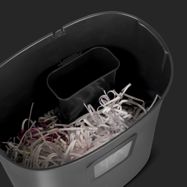 Istotnym elementem niszczarki dokumentów jest 21-litrowy kosz na ścinki, którego duża pojemność sprawia, że nie będziesz musiał go często opróżniać. Dużym ułatwieniem jest zdejmowana głowica z uchwytem, dzięki czemu opróżnianie kosza jest niezwykle łatwe.