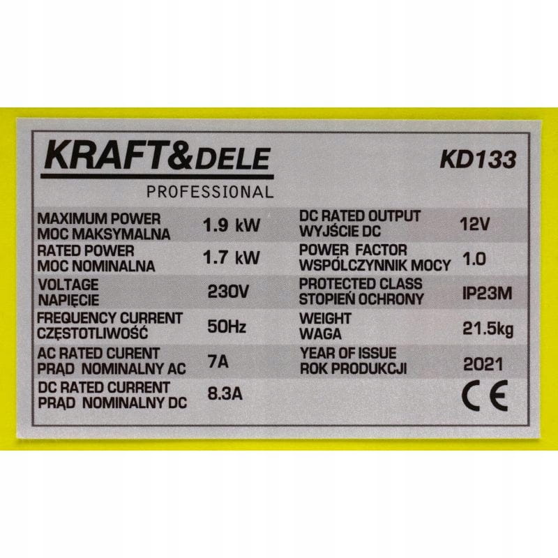 - Maksymalna moc prądnicy 1,9 kW