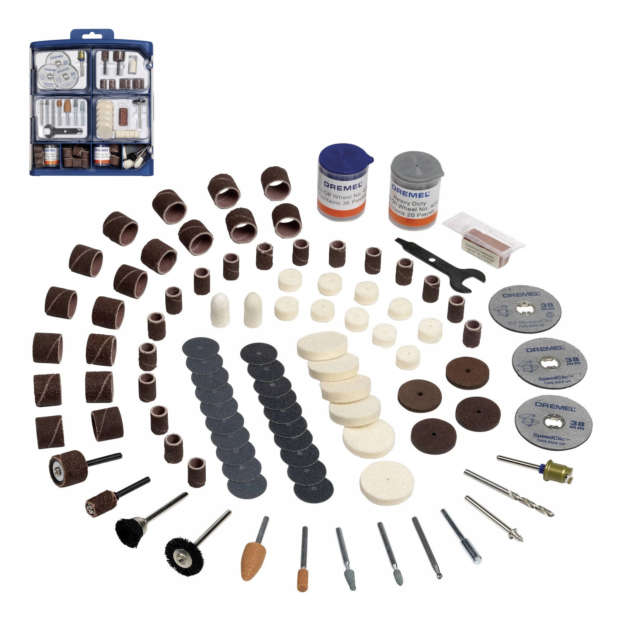 150-częściowy uniwersalny zestaw akcesoriów obejmuje 150 wysokiej jakości oryginalnych akcesoriów Dremel, w tym akcesoria EZ SpeedClic do szybkiej i łatwej wymiany. Dzięki temu zestawowi akcesoriów możesz obsługiwać szeroki zakres prac i projektów wykonanych z różnych materiałów.