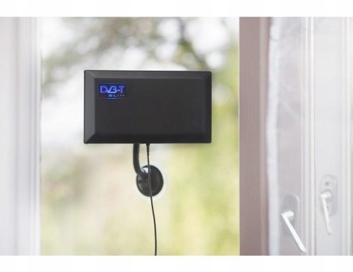 Antena do odbioru naziemnej telewizji cyfrowej DVB-T i analogowej oraz audycji radiowych DAB w zakresie 174 – 230 MHz, 470 – 862 MHz. Małe wymiary, nowoczesny wygląd, gotowa do pracy po wyjęciu z opakowania. Zestaw zawiera antenę, kabel antenowy, wtyk antenowy, wtyk USB 5V, specjalny uchwyt – przyssawkę umożliwiający mocowanie anteny np. do szyby w oknie, szyby w samochodzie, stołu, karoserii samochodu i innych gładkich powierzchni. Podstawka umożliwia również zamocowanie anteny bezpośrednio do tylnej obudowy telewizora lub uchwytu ściennego TV
