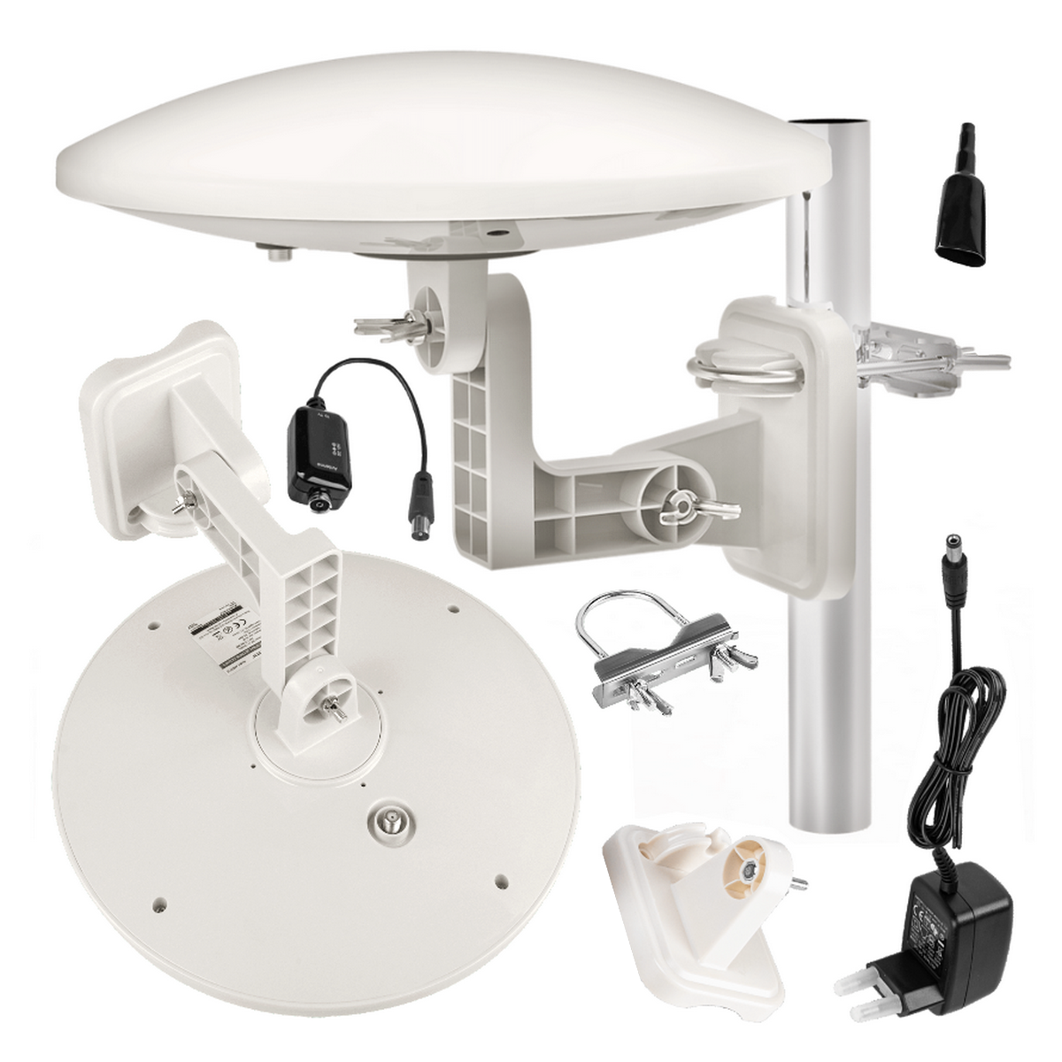 - Dzięki wbudowanemu przedwzmacniaczowi antena osiąga wysoki zysk i niskie szumy