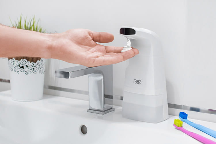 - Półprzezroczysty zbiornik ułatwiający kontrolę ilości mydła