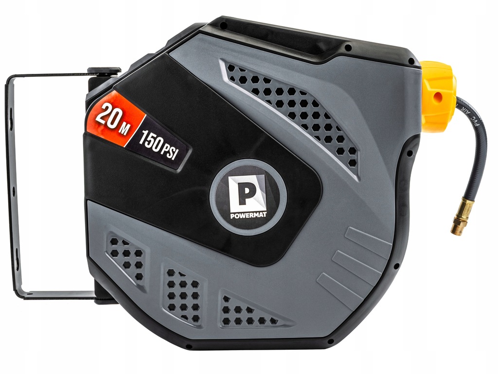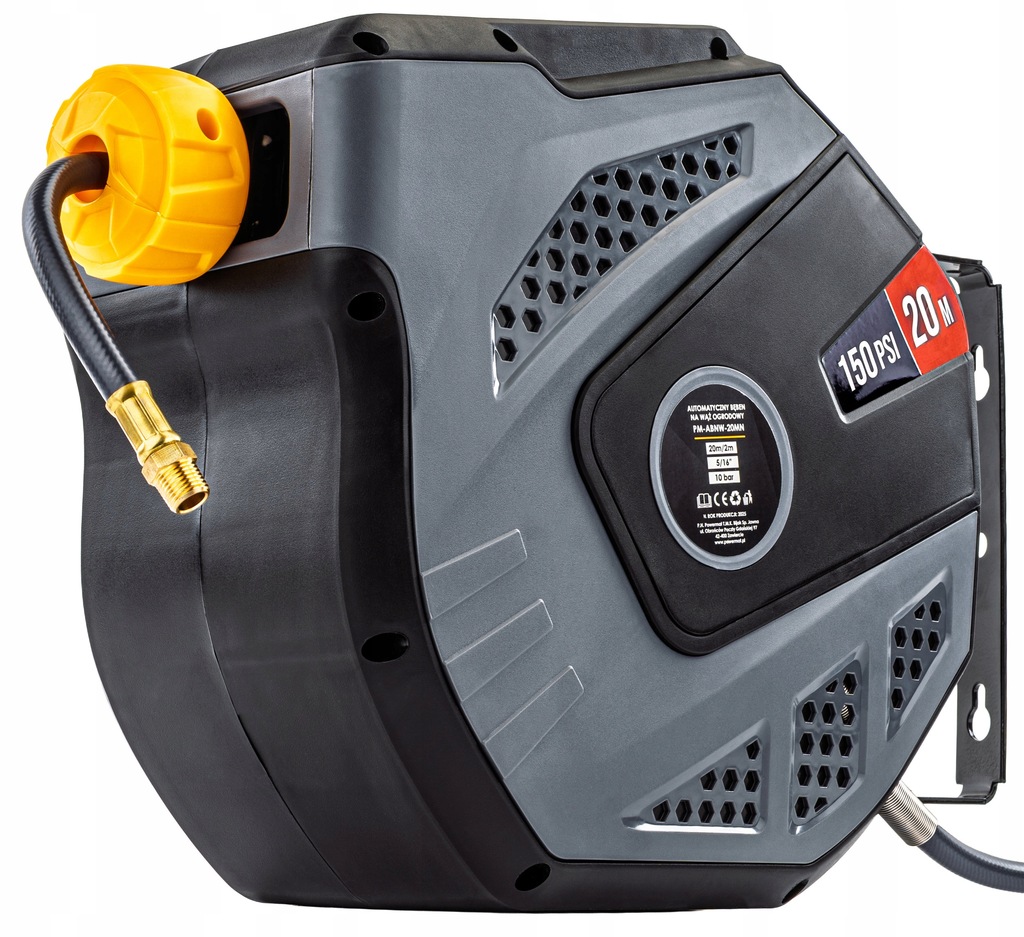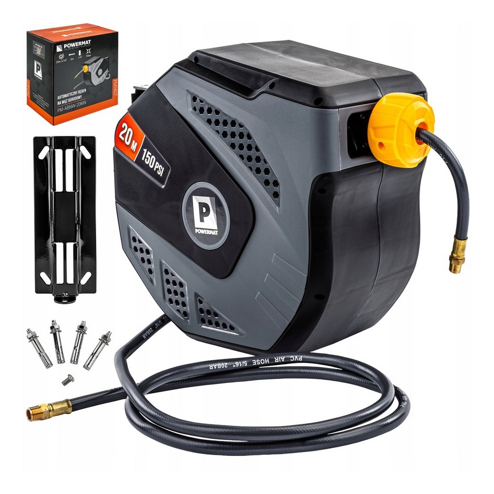 Automatyczny bęben na wąż pneumatyczny Powermat to praktyczne urządzenie ułatwiające prace warsztatowe. Dzięki automatycznemu zwijaniu, możliwości obrotu o 180° i kompaktowej, odpornej obudowie PP, zapewnia wygodę użytkowania i oszczędność miejsca. Produkt przeznaczony jest do domowych zastosowań, zapewnia bezpieczeństwo dzięki blokadzie węża i prostemu montażowi.