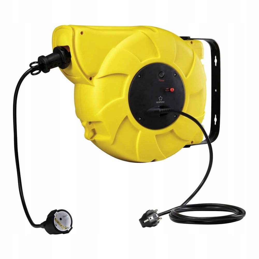 Bęben zapewnia porządek, zmniejsza ryzyko plątania się kabli oraz ułatwia ich szybkie i wygodne zwijanie po zakończeniu pracy. Wytrzymała obudowa chroni kabel przed uszkodzeniami, a możliwość zamontowania na ścianie oszczędza miejsce w pomieszczeniu.