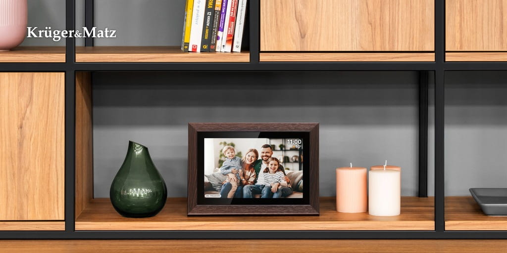 Ramka Kruger&Matz, dzięki dedykowanej aplikacji FRAMEO, gwarantuje nową jakość dzielenia się wspomnieniami. Teraz możesz łatwo i szybko przesyłać swoje ulubione zdjęcia i filmy prosto ze smartfona do ramki. Odtwarzaj każdy kadr z życiowych wydarzeń z najbliższymi i ciesz się magią wspomnień.
