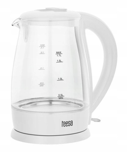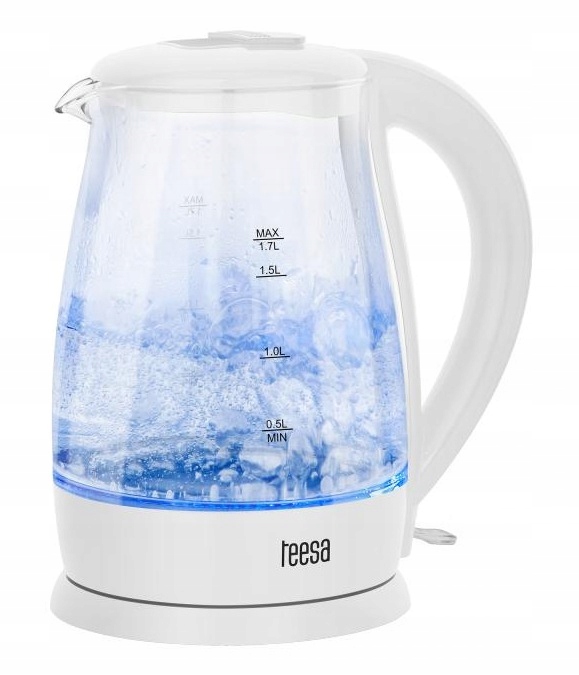 Zastanawiasz się jaki czajnik elektryczny wybrać? Polecamy czajnik bezprzewodowy, którego design przypadnie do gustu każdemu, kto ceni nowoczesność. Przeszklenie w połączeniu z niebieskim podświetleniem, które eksponowane jest w czasie gotowania się wody sprawi, że szklany czajnik elektryczny Teesa będzie efektowną ozdobą w Twojej kuchni.