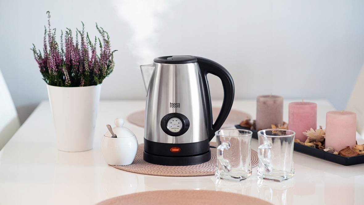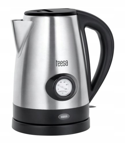 Jeśli zastanawiasz się jaki czajnik elektryczny wybrać, warto zwrócić uwagę na prezentowany model Teesa. Czajnik elektryczny ze wskaźnikiem temperatury sprawdzi się doskonale w kuchni osób, które lubią urozmaicać sobie życie przygotowanymi zgodnie ze sztuką wykwintnymi, gorącymi napojami. Umieszczony na metalowej obudowie termometr pozwala z łatwością sprawdzić czy aktualna temperatura wody będzie idealna do zaparzenia zielonej herbaty, czy np. czekolady. Z kolei wskaźnik poziomu wody ułatwi szybkie sprawdzenie jej ilości w czajniku, bez konieczności otwierania pokrywy.