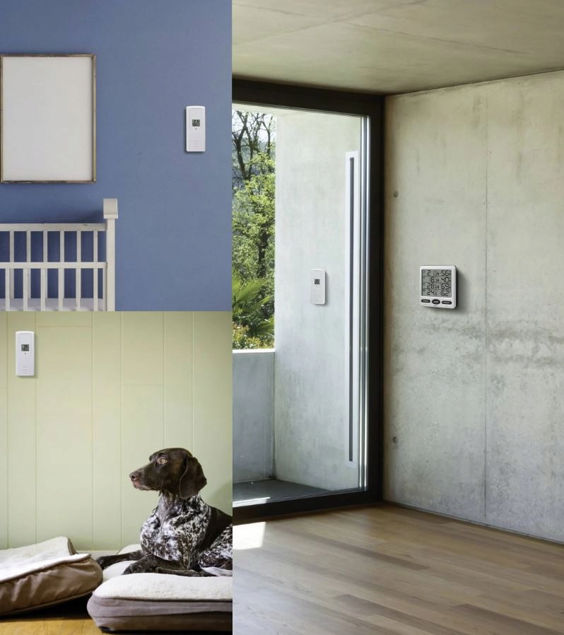 Dołączone 3 czujniki zewnętrzne przesyłają swoje dane pomiarowe drogą radiową do stacji bazowej.