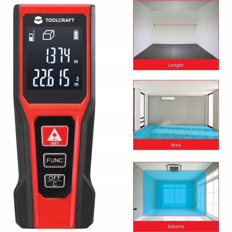 Dalmierz laserowy MIERNIK ODLEGŁOŚCI 20m podświetlany wyświetlacz TOOLCRAFT