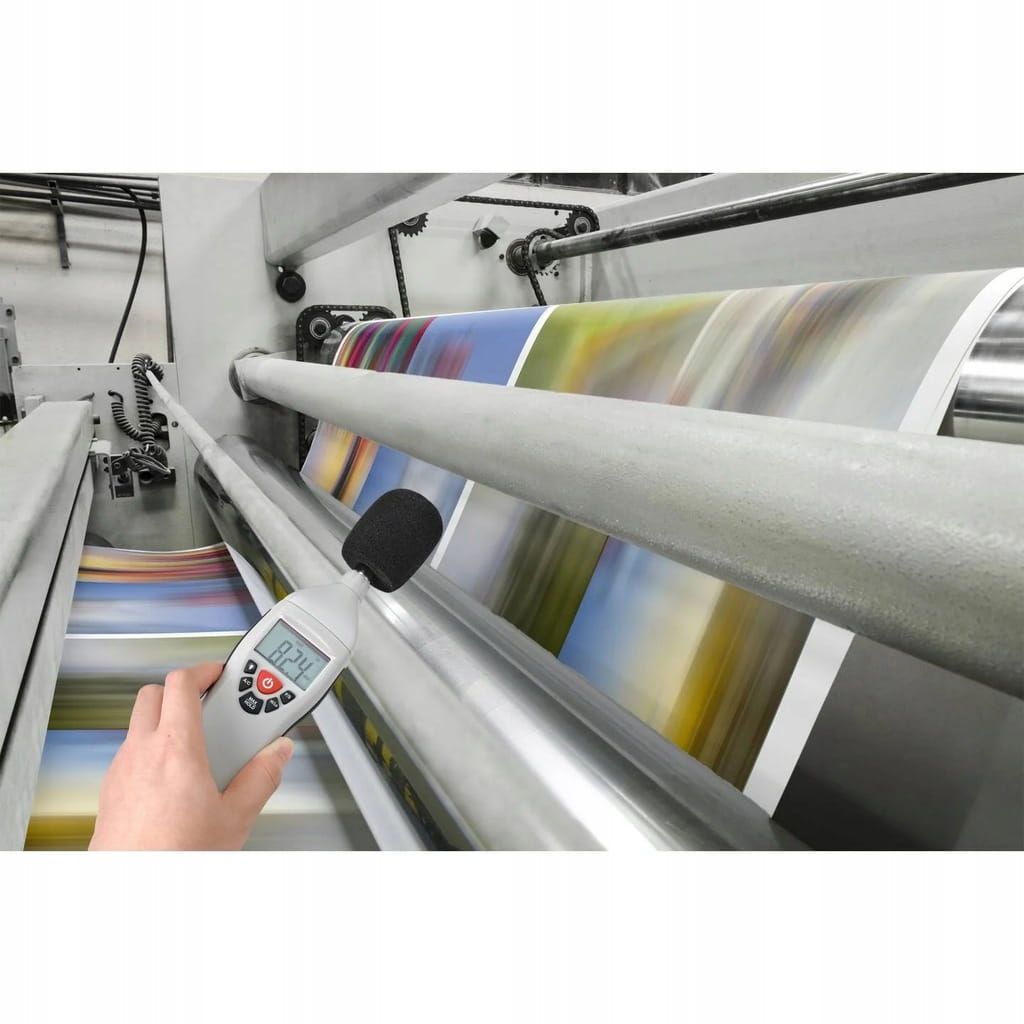 Miernik ciśnienia akustycznego mierzy ciśnienie akustyczne o intensywności 30-130 dB. Urządzenie pomaga w sprawdzaniu poziomu ciśnienia akustycznego i dokonywaniu pomiarów odgłosów otoczenia. W celu stłumienia zakłócających odgłosów wiatru można nałożyć osłonę przeciwwiatrową, która nie zakłóca pomiaru poziomu ciśnienia akustycznego.