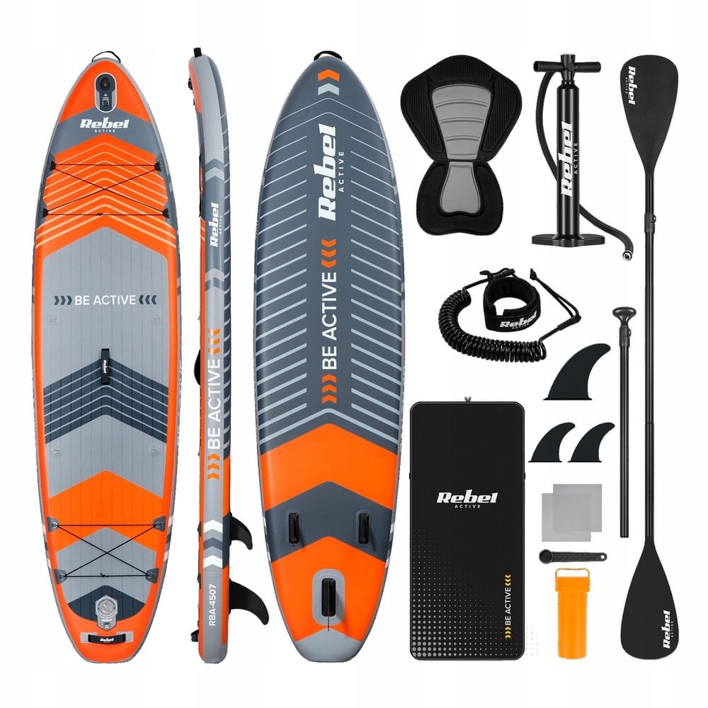 Dla jeszcze większego komfortu i stabilności podczas pływania w zestawie z deską SUP Rebel Active znajdziesz wygodne siedzisko z oparciem, które w zależności od swoich preferencji możesz łatwo zamontować i zdemontować. To rozwiązanie pozwala na wygodny odpoczynek podczas dłuższych wycieczek na wodzie. Usiądź, zrelaksuj się i ciesz się widokami i spokojem natury.