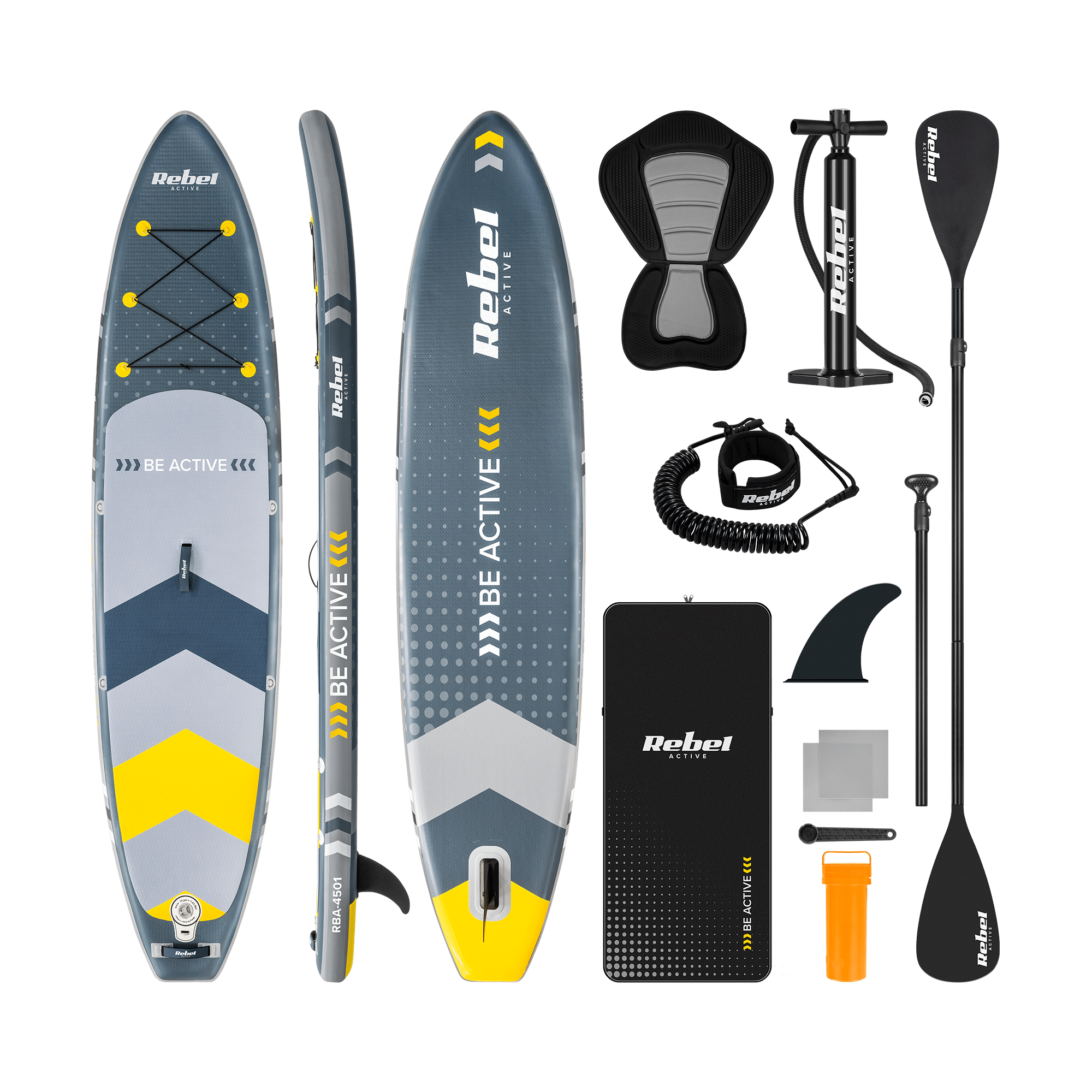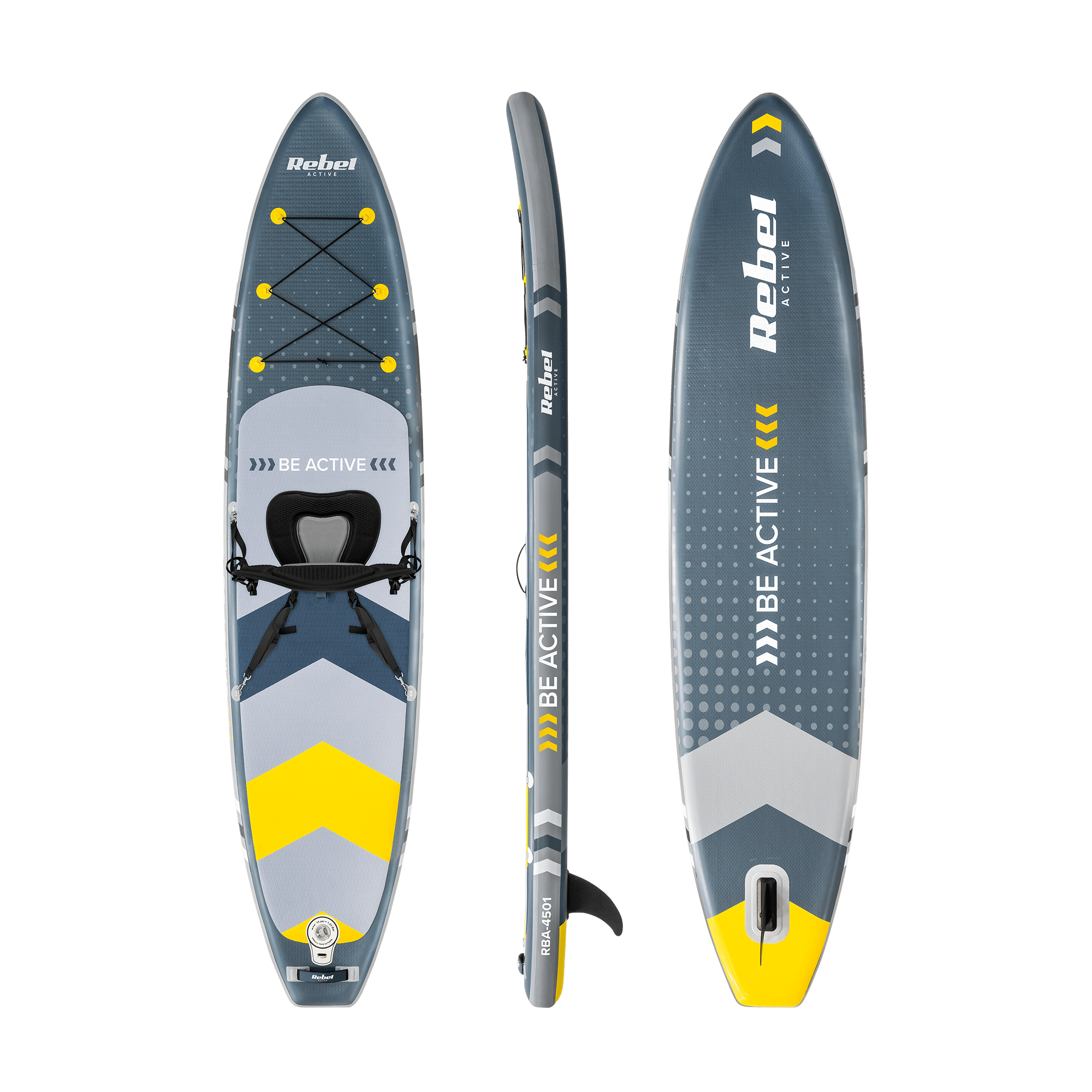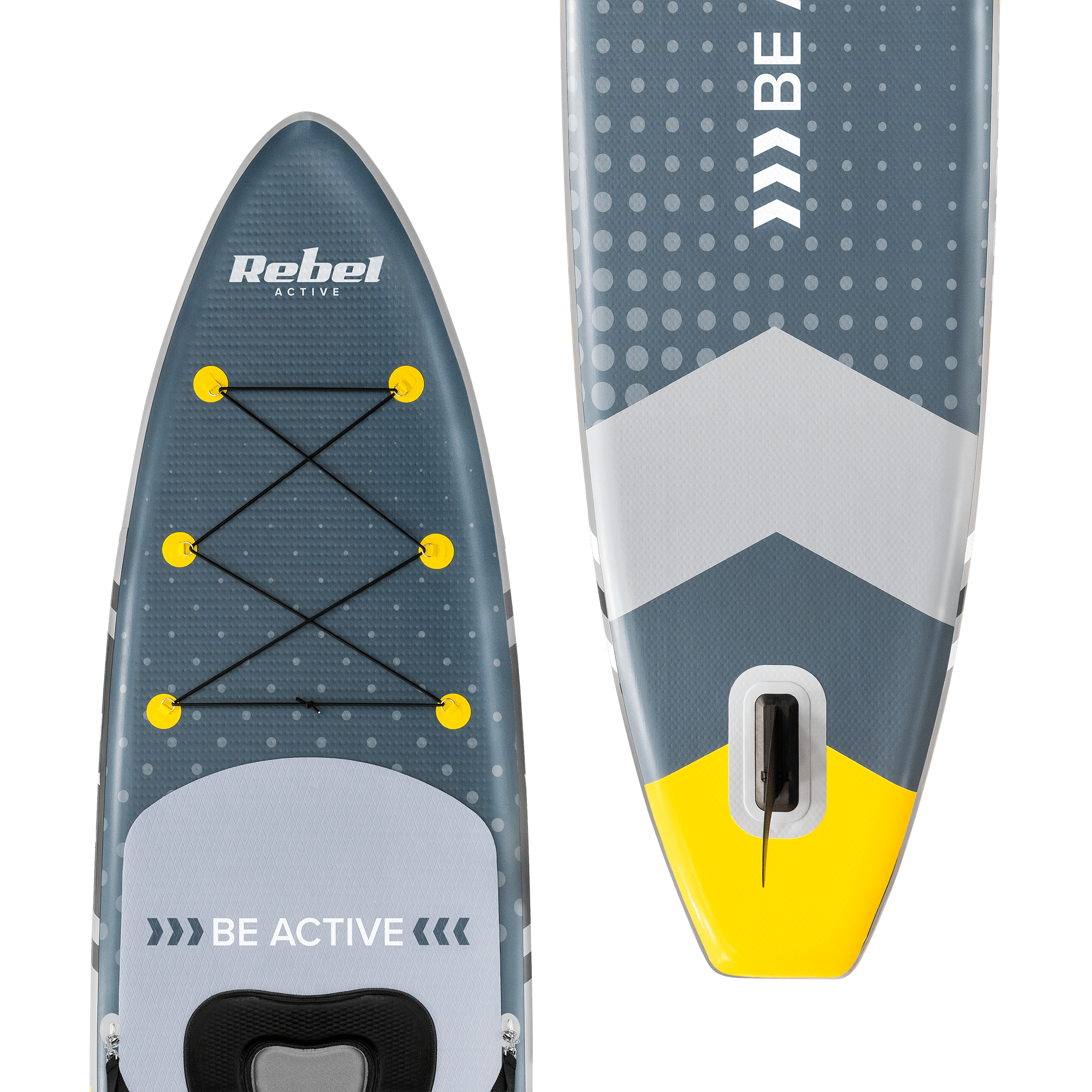 Dla jeszcze większego komfortu i stabilności podczas pływania w zestawie z deską SUP Rebel Active znajdziesz wygodne siedzisko z oparciem, które w zależności od swoich preferencji możesz łatwo zamontować i zdemontować. To rozwiązanie pozwala na wygodny odpoczynek podczas dłuższych wycieczek na wodzie. Usiądź, zrelaksuj się i ciesz się widokami i spokojem natury.