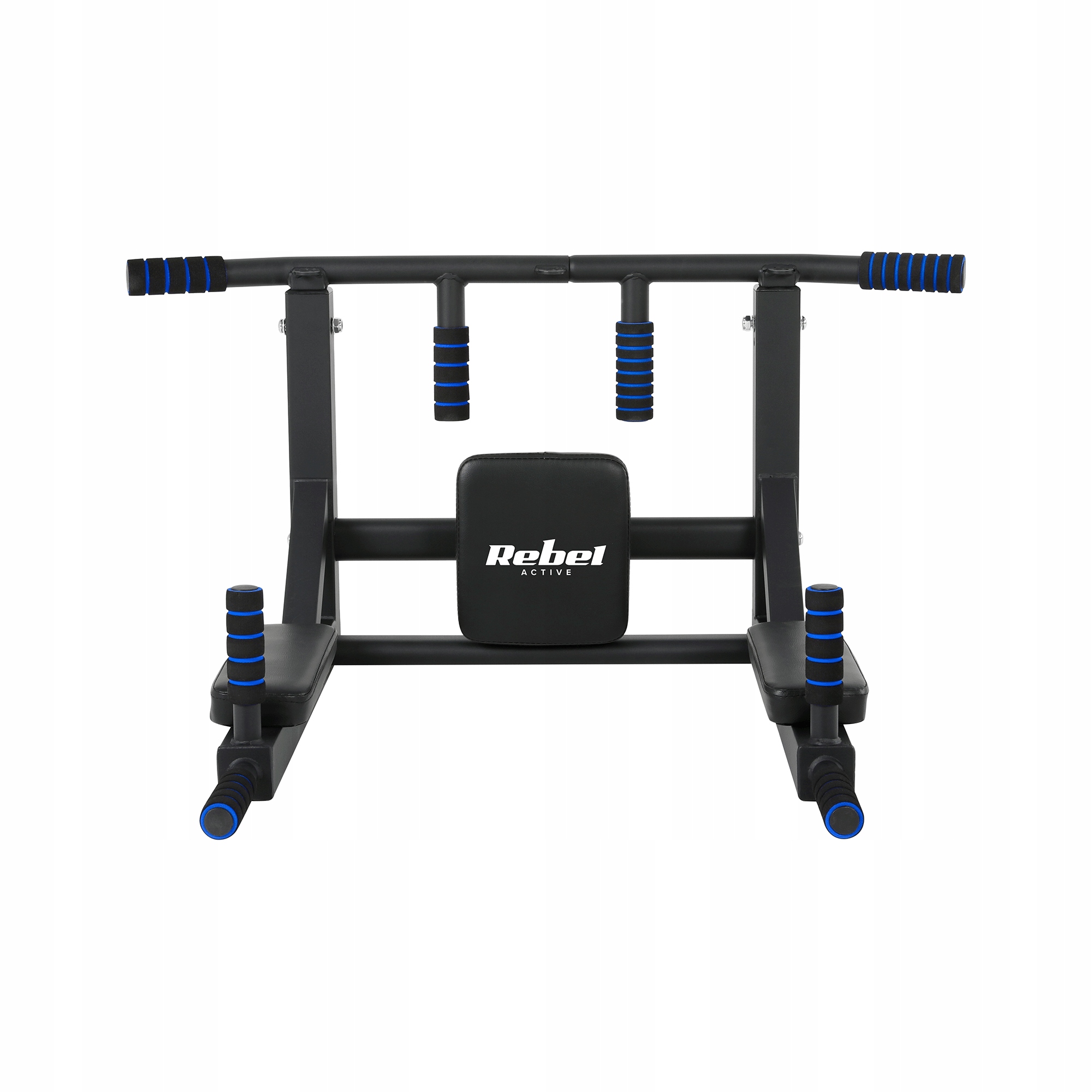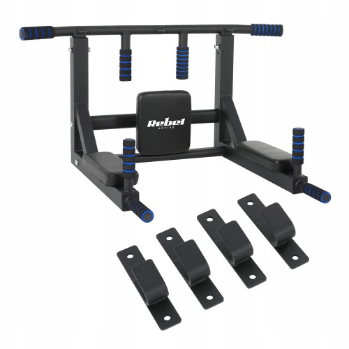 Drążek RB-2401 Rebel Active oferuje różne możliwości montażu, dzięki czemu może pełnić funkcję zarówno drążka do podciągania, jak i poręczy do ćwiczeń. Funkcja drążka umożliwia wykonywanie podciągań w różnych wariantach chwytu (nachwyt, podchwyt, chwyt neutralny), z kolei montaż jako poręcz umożliwia wykonywanie dipów i ćwiczeń na triceps.
