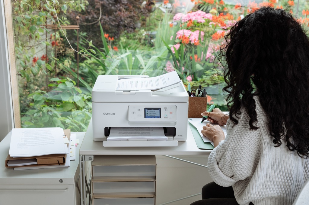 Dzięki kompaktowej konstrukcji oraz pełnej łączności Wi-Fi można z łatwością połączyć drukarkę ze sprzętem domowym i drukować ze smartfonów, tabletów i laptopów.