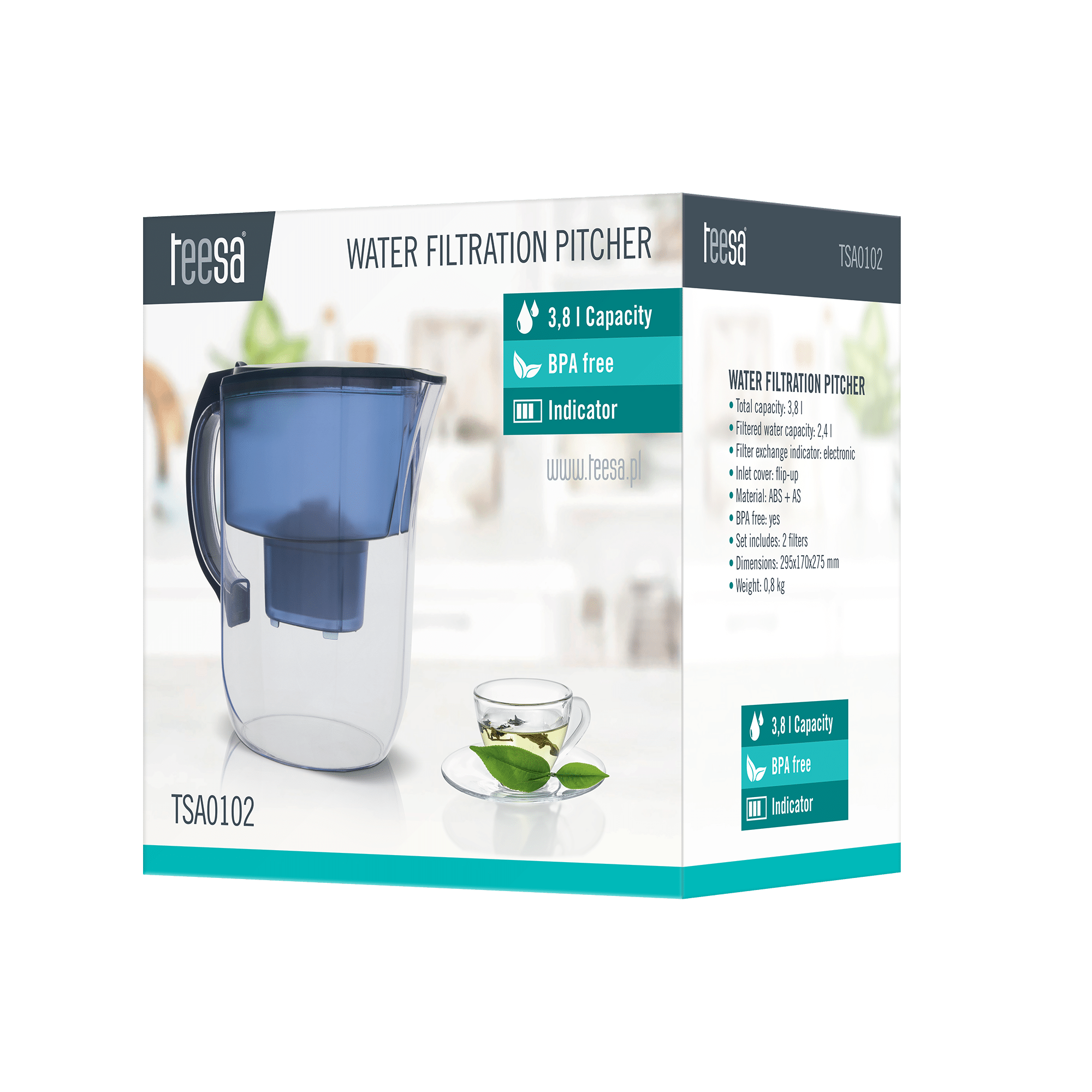 Dzbanek Filtrujący do Wody 3,8L Teesa + 2x Filtr