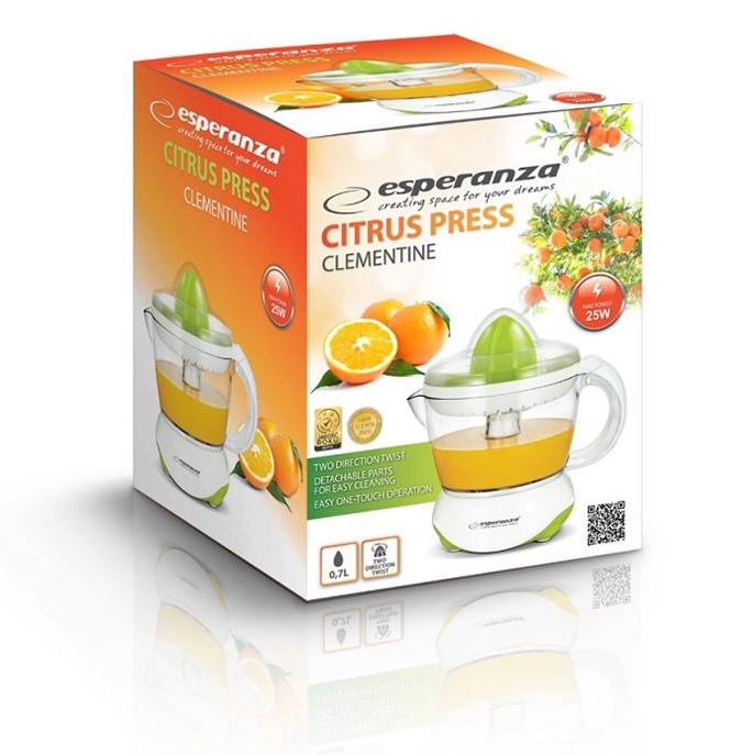Zacznij nowy dzień od porcji zdrowych witamin z soku przygotowanego w domu. Dzięki wyciskarce Clementine uzyskasz świeży sok z cytrusów szybko i efektywnie kiedy tylko zechcesz. Wyposażona jest w uniwersalny stożek do dużych i małych cytrusów. Dla uzyskania lepszej wydajności stożek obraca się automatycznie w prawą lub lewą stronę. Nasza wyciskarka do cytrusów jest niezbędna w kuchni dla tych, którzy cenią własne zdrowie oraz zdrowie swoich bliskich.