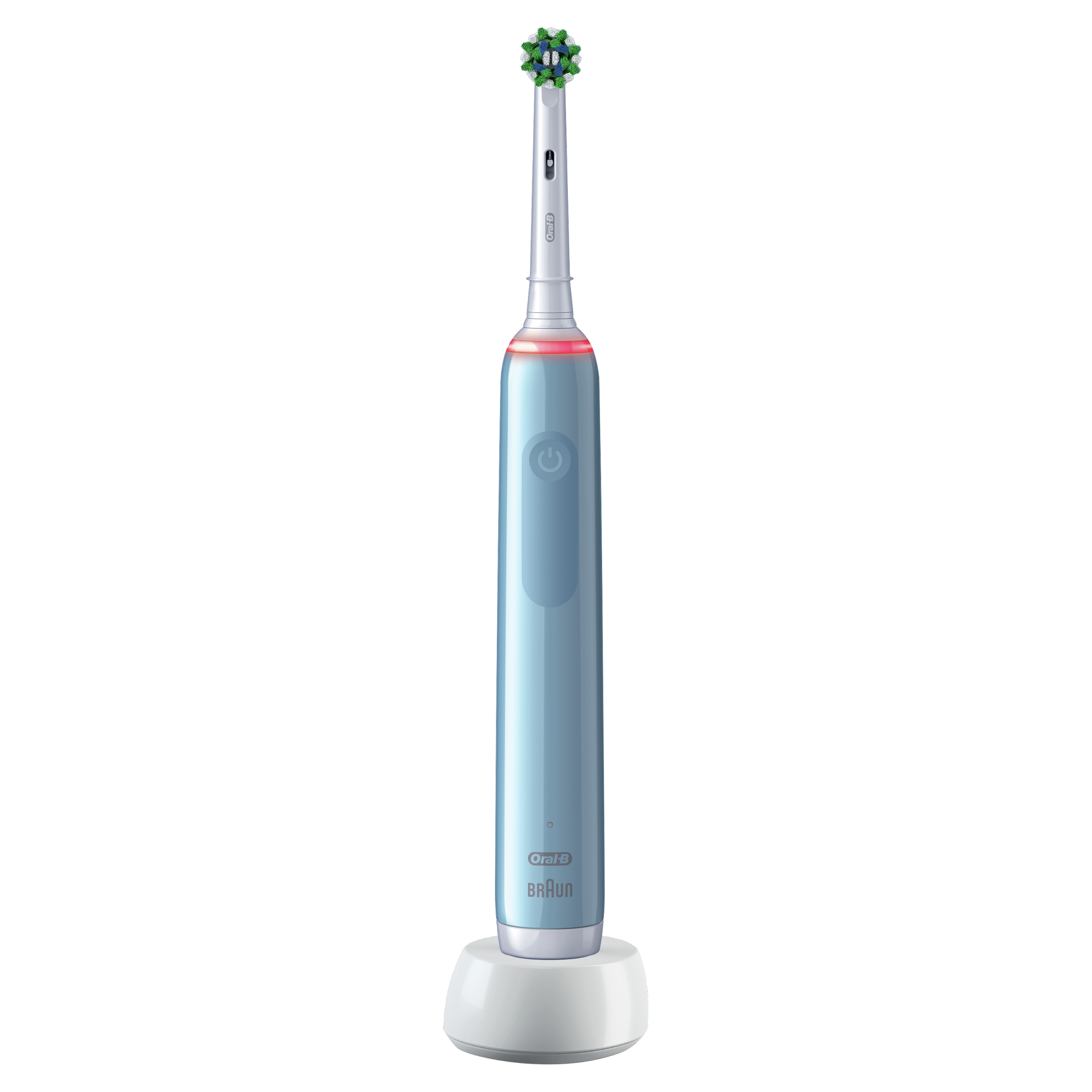 Oral-B Pro 3 ma okrągłą główkę szczoteczki, która owija się wokół każdego zęba z osobna, zapewniając czystsze zęby i zdrowsze dziąsła. Kontrola nacisku w zakresie 360° Zapala się na czerwono i zmniejsza prędkość szczotkowania podczas szczotkowania ze zbyt dużym naciskiem — dla zdrowszych dziąseł.