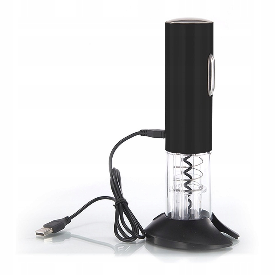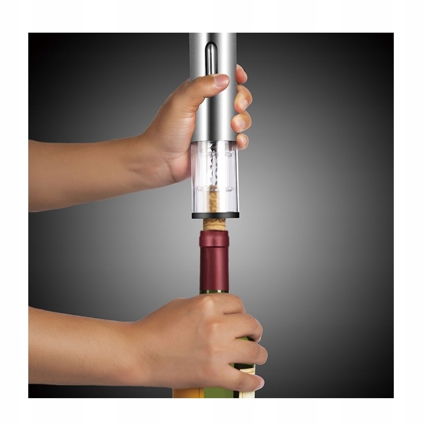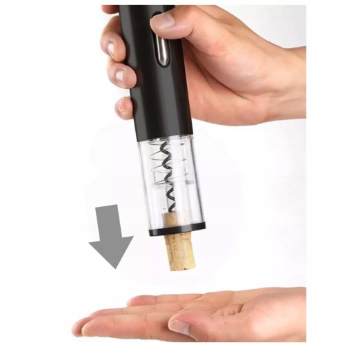 - Elektryczny korkociąg wyciąga korek z butelki po naciśnięciu przycisku