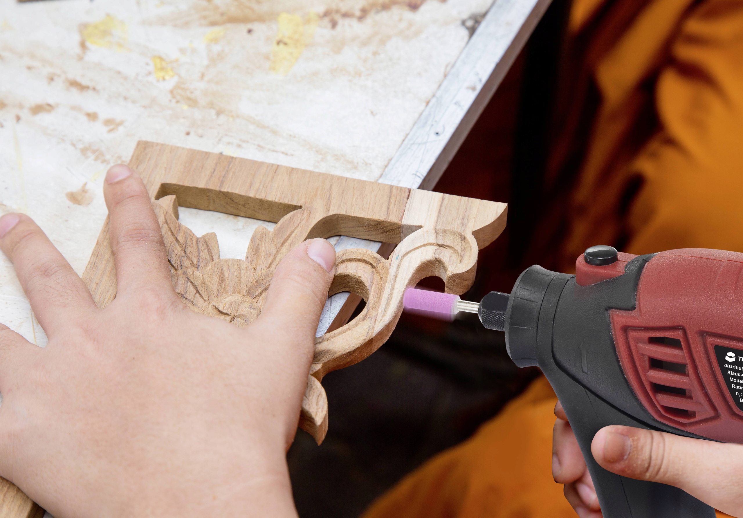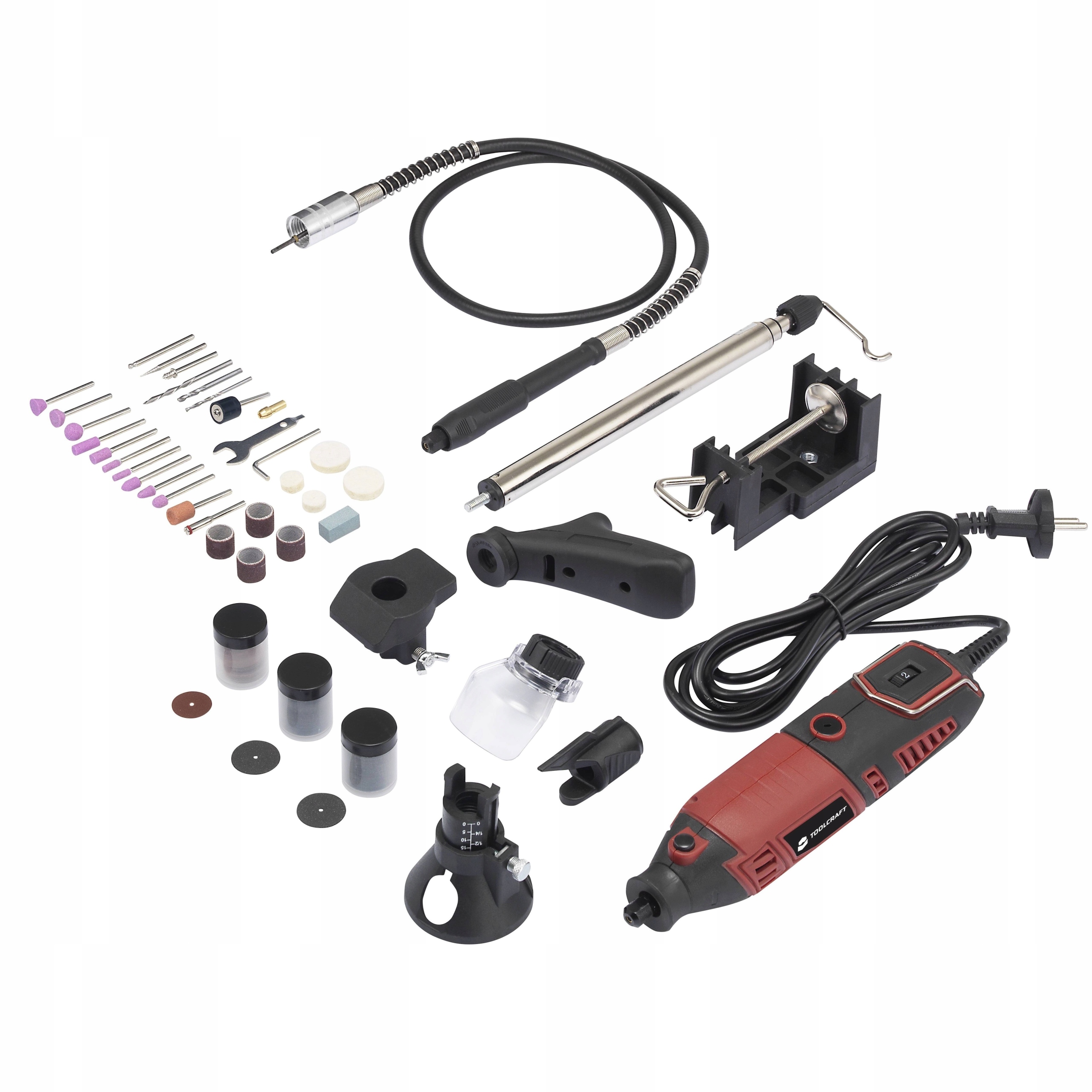 Zestaw składający się ze 137 akcesoriów, uniwersalnej nasadki frezarskiej do drążenia dowolnego kształtu z drewna oraz elastycznego trzpienia do wykorzystania w różnych projektach.