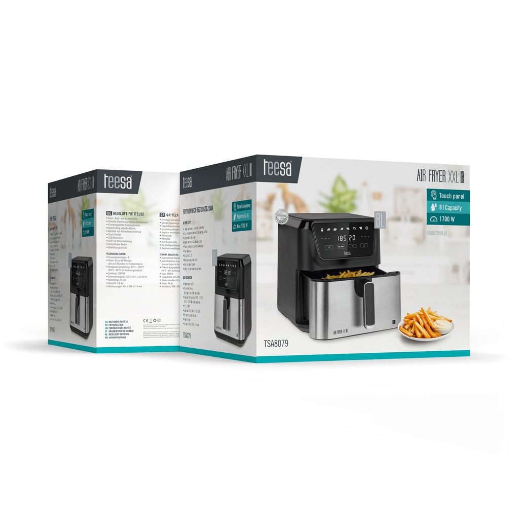 Odkryj zdrowszy sposób gotowania z TEESA DIGITAL AIR FRYER XXL! Dzięki technologii równomiernej cyrkulacji gorącego powietrza przygotujesz chrupiące, złociste potrawy bez dodatku tłuszczu. Od frytek po soczyste steki – ciesz się pełnią smaku i wartości odżywczych, a jednocześnie oszczędzaj czas i energię. Nowoczesny design i intuicyjny panel dotykowy sprawią, że gotowanie stanie się czystą przyjemnością.