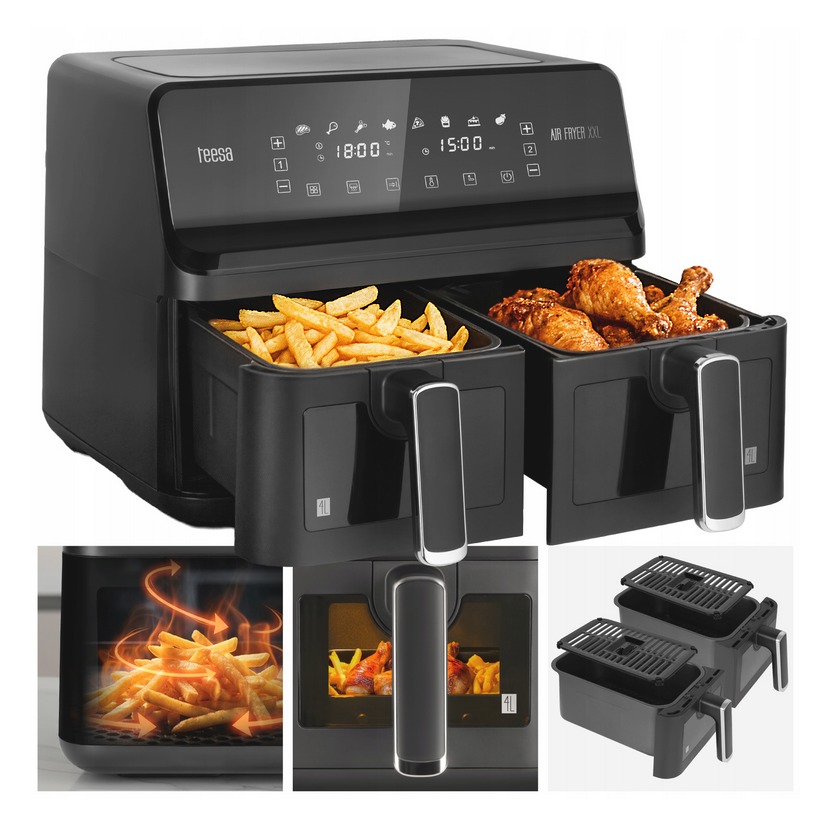 Dwukomorowa frytkownica beztłuszczowa Teesa AIR FRYER DUAL POT XXL 8L 2700W