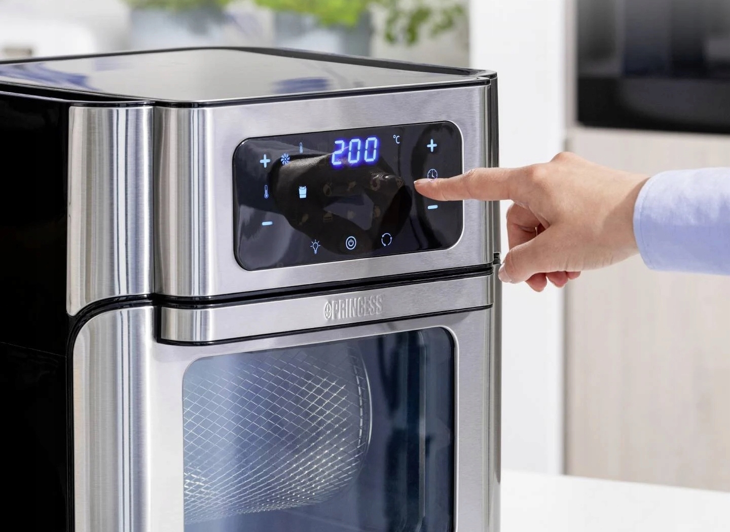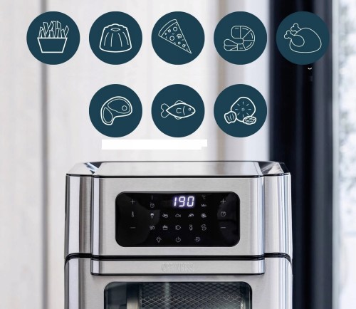 - 10 zaprogramowanych ustawień dla frytek, steków, ciastek, pizzy, chleba, ryb, krewetek i kurczaka, a także grillowania i suszenia.