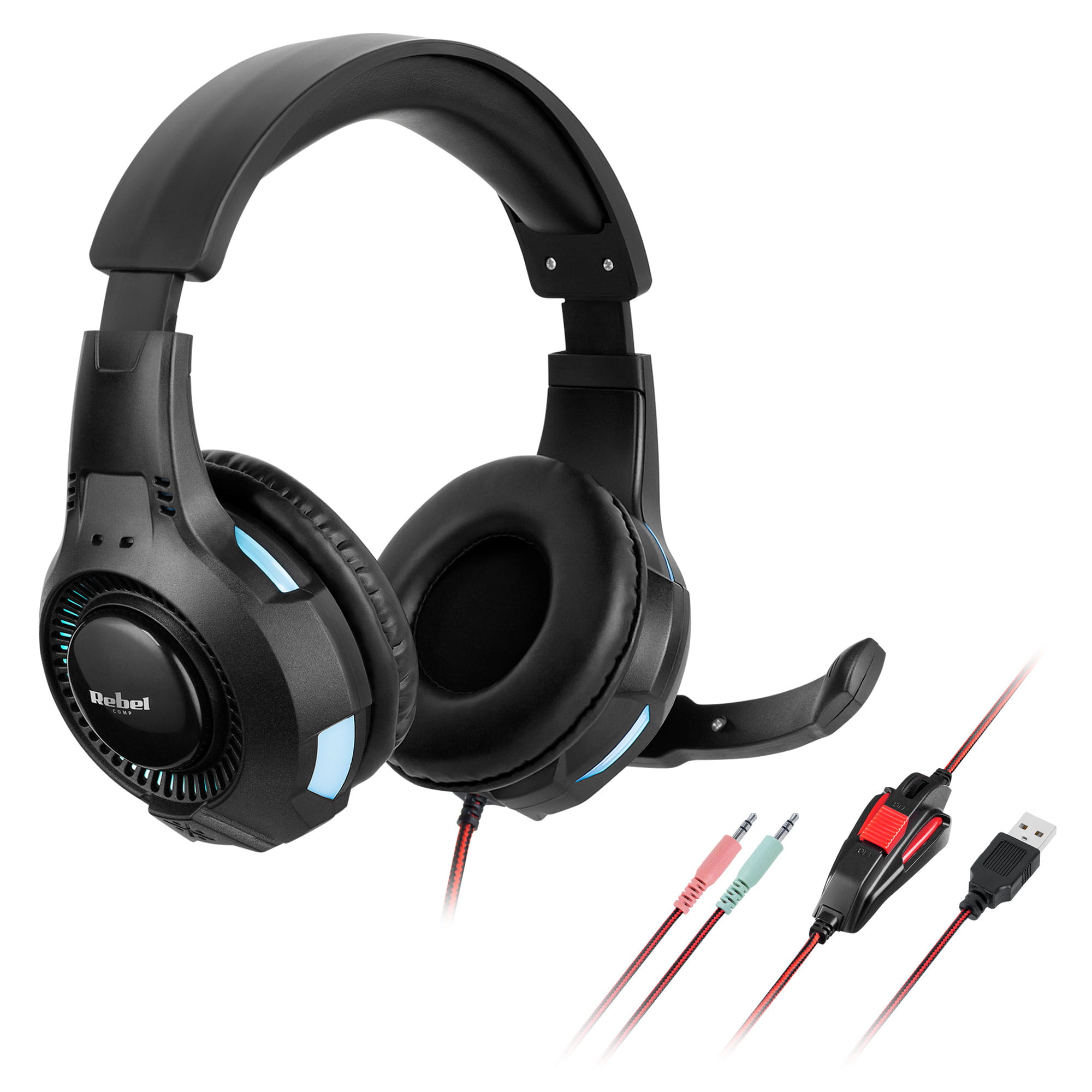 Słuchawki przewodowe z mikrofonem Rebel wyróżnia nowoczesny design i komfort. Nauszniki i regulowany pałąk nagłowny na całej powierzchni zostały wyłożone miękką ekoskórą, dzięki czemu gwarantują wysoki komfort nawet w czasie długich godzin spędzonych na grze. Dodatkowo podświetlenie RGB dodaje im gamingowego pazura i przyciąga spojrzenia.