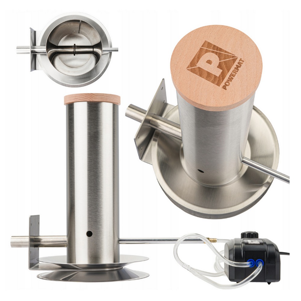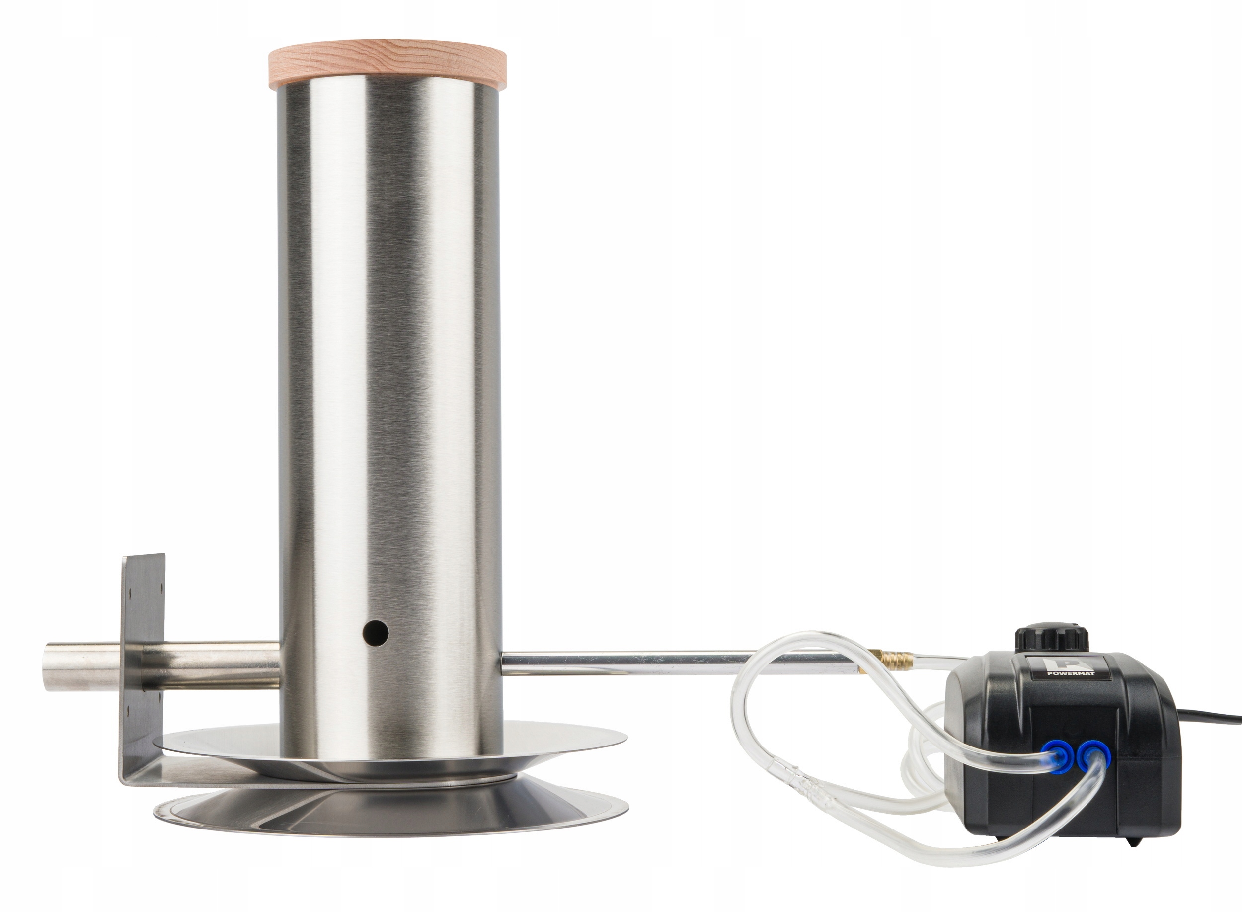 - Precyzyjne ustawienie ilości produkowanego dymu pozwala na uniknięcie nadmiernego zakwaszenia produktów. Pompa jest podłączona poprzez wężyk do specjalnej, zintegrowanej rurki, przez którą jest dostarczane powietrze.