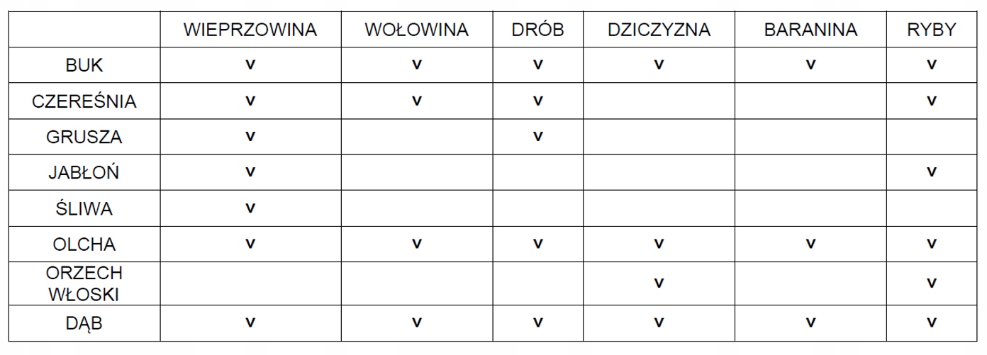 Przygotowanie mięs względem rodzaju zrębków drzewa