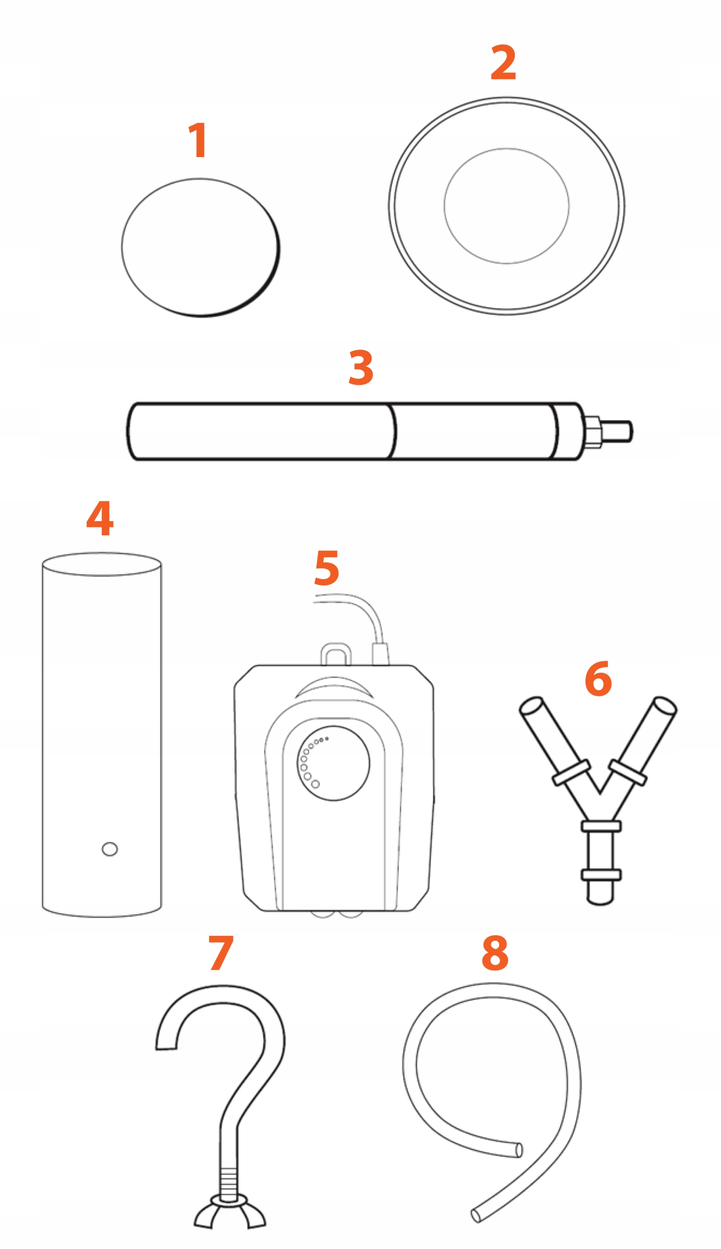 - Do podłączenia pompy do dyszy generującej dym służy elastyczny wężyk o długości 4 metrów, który można dostosować do potrzeb, umożliwiając łączenie tych elementów.