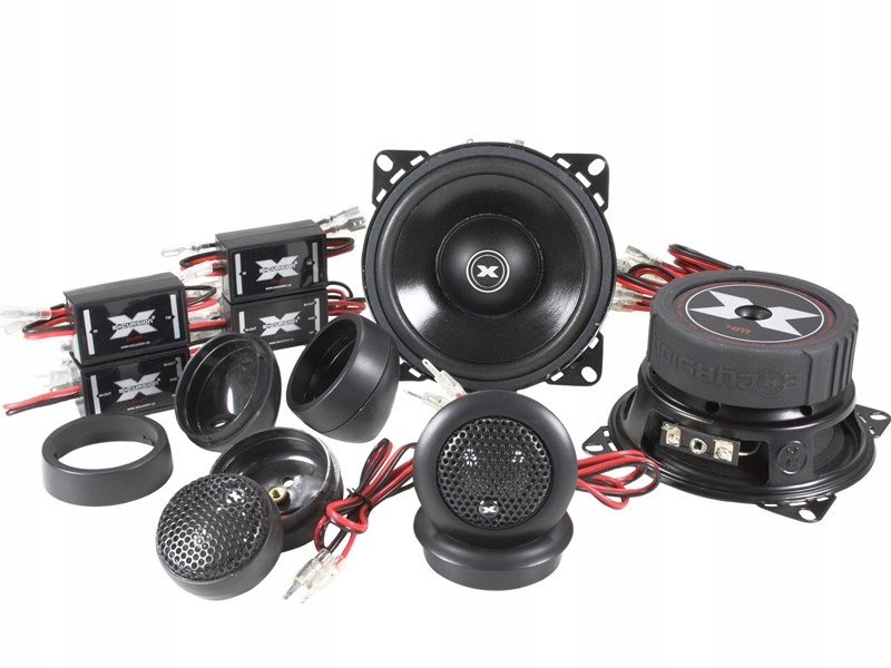 Samochodowy 2-drożny zestaw głośników odseparowanych z mid-wooferami o średnicy 100 mm z serii Street eXcursion (SX) niemieckiej marki Excursion. Zestaw prezentuje bardzo dojrzały i dynamiczny charakter brzmienia, jaki często oferują znacznie droższe produkty. Jest to możliwe dzięki temu, że w głośnikach z serii SX zastosowano szereg sprawdzonych naturalnych materiałów, technologii i rozwiązań, które od wielu lat są uznawane za jedne z najlepszych dla tego rodzaju produktów oferowanych przez renomowanych producentów z branży Home i Car Audio, często również w modelach pozycjonowanych w dużo wyższej klasie. Należą do nich między innymi sztywne i lekkie membrany mid-wooferów ADC z 2-warstwowego prasowanego papieru zaimpregnowanego przed wilgocią specjalną substancją antyrezonansową poprawiająca brzmienie oraz wysokiej jakości głośniki wysokotonowe z kopułkami 25 mm wykonanymi z naturalnego jedwabiu, które w tym przedziale cenowym są praktycznie bez konkurencji. Nie od dziś wiadomo, że właśnie papierowe membrany mid-wooferów zapewniają najbardziej dynamiczne, wierne oraz naturalne brzmienie niskich i średnich zakresów pasma akustycznego, a jedwabne kopułki tweeterów dostarczają detalicznych wysokich tonów o przyjemnej barwie. Za prawidłowy napęd membran mid-wooferów odpowiadają wydajne układy magnetyczne posiadające centralne otwory ograniczające kompresję i wentylujące cewki drgające, które zostały nawinięte miedzianym drutem na lekkich aluminiowych karkasach. Na uwagę zasługują także stabilne stalowe kosze z symetrycznie rozłożonymi otworami pod dolnym zawieszeniem, których zadaniem jest dodatkowe wspomaganie systemu chłodzenia. Dzięki temu głośniki są bardziej odporne na obciążenia wyższą mocą, co przekłada się na ich długą i bezawaryjną eksploatację. W zestawie znajdują się także 4 oddzielne dla każdego głośnika zwrotnice pasywne Inline Plug&Play o bardzo małych wymiarach ułatwiających montaż. Zostały wyposażone w wysokiej jakości podzespoły oraz zapewniają dużą elastyczność montażu i szeroki zakres konfiguracji połączeń. Te małe pasywne filtry są idealnym rozwiązaniem pozbawionym całego niepotrzebnego balastu akcesoriów i gadżetów, który tylko nadmiernie "obciążałby" dźwięk i portfel. W efekcie końcowym otrzymujemy bardzo dobrze brzmiący zestaw głośnikowy, którego sekcja średnio-wysokotonowa obfituje bogactwem detali i szczegółów tworzących czysty i wyraźnie odczuwalny przestrzenny obraz dźwiękowy osadzony na solidnym fundamencie basowym budowanym przez głośniki średnio-niskotonowe (mid-woofery). Takich materiałów, rozwiązań, jakości wykonania i brzmienia nie oferuje większość konkurencyjnych głośników o porównywalnym rozmiarze i w podobnej cenie. Sprawia to, że głośniki Excursion z serii SX są niemal bezkonkurencyjne w swojej klasie i od wielu lat należą do grupy najczęściej sprzedawanych głośników przez sprzedawców detalicznych w Europie. Doskonale sprawdzają się w popularnych amatorskich systemach car Hi-Fi, jako znakomite wejście w świat niedrogiego, ale już markowego car audio, a także jako bardzo dobrze brzmiące zamienniki samochodowych głośników fabrycznych (OEM) w przystępnej cenie.