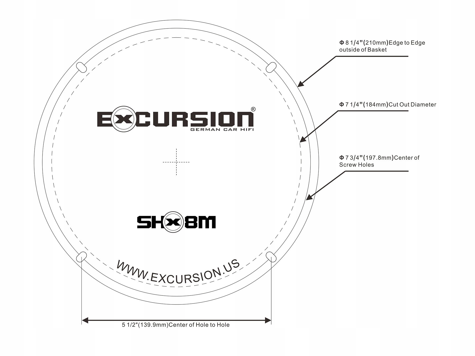Samochodowe głośniki średnio-niskotonowe (mid-woofery) o średnicy 200 mm marki Excursion z serii SHX (Street High Power eXcursion). Głośniki z serii SHX, to bardziej zaawansowane brzmieniowo produkty o podwyższonej wydajności przeznaczone do uniwersalnych zastosowań oraz jako zamienniki fabrycznych systemów głośnikowych (OEM). W porównaniu do cieszących się bardzo dobrą opinią głośników z niższej serii SX, mid-woofery SHX prezentują znacznie dojrzalszy i bardziej dynamiczny charakter brzmienia. Wyższa moc wzmacniacza przeważnie zawsze zapewnia lepszą kontrolą głośników. Z tego powodu impedancja cewek mid-wooferów SHX została obniżona do 3 Ohm. Jest to jeszcze akceptowalna wartość przez większość standardowych radioodtwarzaczy i dobre systemy fabryczne. Dzięki temu można efektywniej wykorzystać każdy wzmacniacz, nawet wbudowany w radioodtwarzaczu, uzyskując z niego dodatkowo ok. 25% więcej mocy, co w praktyce przekłada się na bardziej dynamiczne brzmienie. Stożkowe membrany mid-wooferów wykonano z bardzo dobrego materiału, którym jest 2-warstwowy kompozyt papieru i naturalnej wełny z domieszką włókna szklanego. Sprawia to, że membrany są lżejsze ok. 10%, co skutkuje wyższą detalicznością brzmienia w zakresie średnich tonów oraz odczuwalną poprawą szybkości ataku fundamentu basowego (po wstępnym okresie docierania). Natomiast silniejszy o 25% wentylowany układ magnetyczny EFF (Efficient Flux Field) wraz z wydłużoną szczeliną cewki umożliwiają większe liniowe wychylenia membrany, zapewniając tym znacznie wyższą wydajność głównie w zakresie niskich tonów. Stalowe kosze mid-wooferów oraz aluminiowe karkasy cewek zostały wyposażone w dodatkowe otwory wspomagające system chłodzenia. Podobnie jak w serii SX, również membrany mid-wooferów SHX mają specjalnie ukształtowane nakładki przeciwpyłkowe (dustcap) w stylu korektorów fazy, których głównym zadaniem jest poprawa rozdzielczości brzmienia średnich tonów w przypadku większego kąta odsłuchu (np. przy nisko zamontowanych mid-wooferach drzwiowych). W zestawie znajdują się dwie 2-drożne zwrotnice pasywne pierwszego rzędu (HPF 6 dB/okt., LPF 6 dB/okt.) przygotowane do współpracy z opcjonalnymi głośnikami wysokotonowymi.