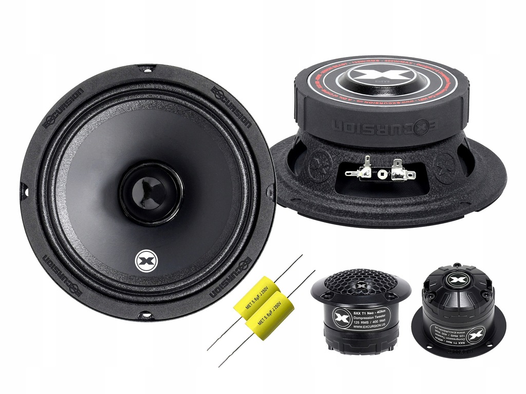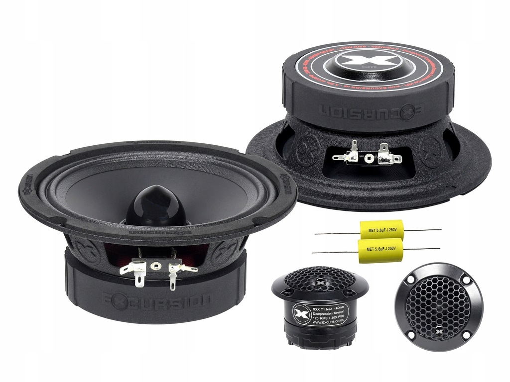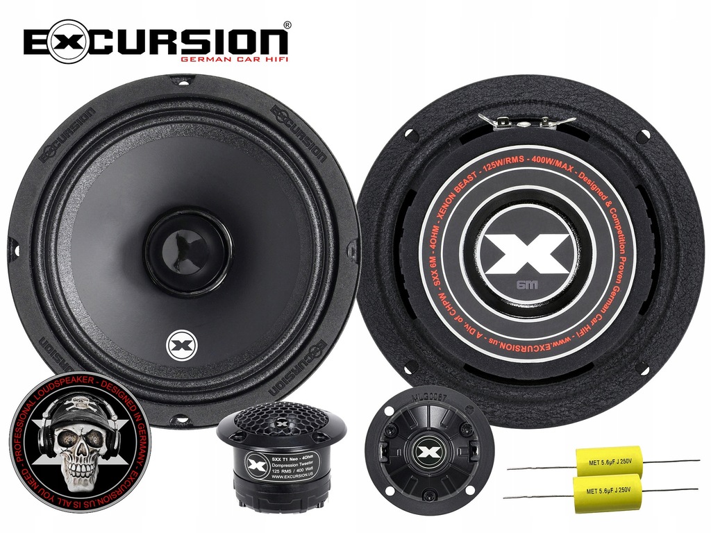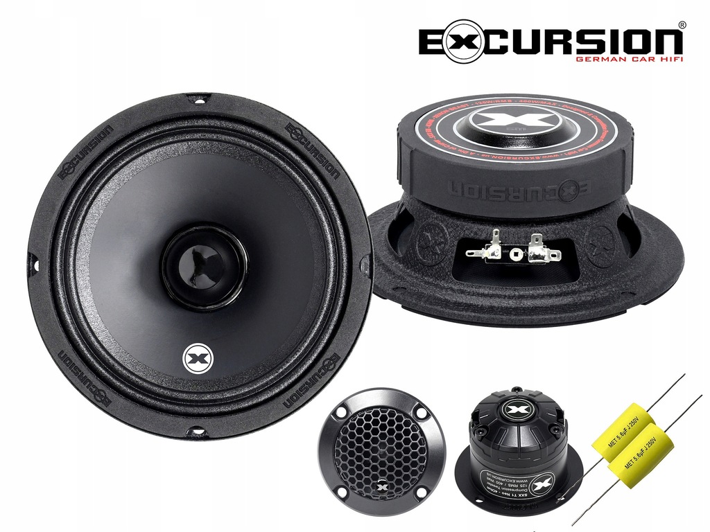 Samochodowy 2-drożny zestaw głośników odseparowanych SQ-SPL o wysokiej efektywności z serii SXX Street Xenon PRO AUDIO niemieckiej marki Excursion. W skład zestawu wchodzą dwa głośniki średnio-niskotonowe (mid-woofery) Excursion SXX-M6 o średnicy 165 mm, dwa głośniki wysokotonowe (tweetery) Excursion SXX-T1 o średnicy 60 mm oraz dwa kondensatory audio MET do szeregowego podłączenia w torze tweeterów, jako filtry HP 6 dB/oct. Zestaw jest przeznaczony przede wszystkim dla wymagających fanatyków głośnego brzmienia (SPL), przy jednoczesnym zachowaniu możliwie wysokiej jakości dźwięku (SQ), a także do zastosowań w samochodach uczestników zawodów i turniejów car audio SPL, jako doskonałe uzupełnienie systemów audio wykorzystujących wiele potężnych subwooferów. Znakomicie sprawdzą się również w samochodach demonstracyjnych (democarach) prezentowanych publicznie podczas targów, zlotów lub innych imprez. Każdy komponent wchodzący w skład zestawu Excursion SXX-6C można także kupić oddzielnie.