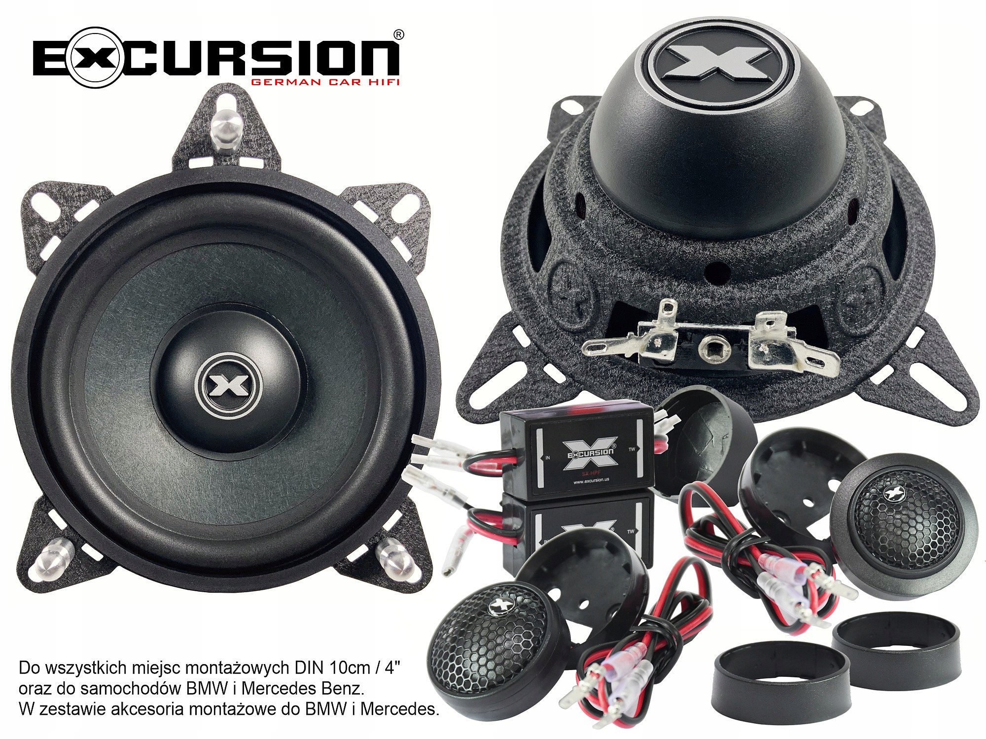 2-drożny zestaw samochodowych głośników odseparowanych z mid-wooferami o wymiarach 110x120 mm niemieckiej marki Excursion z serii PX Performance. Po seriach SX i SHX seria Performance (PX) reprezentuje w ofercie Excursion jeszcze wyższy, trzeci poziom jakości i wydajności. Zestaw głośnikowy PX-4C ECO, to bardziej zaawansowane technologicznie i brzmieniowo produkty klasy SQ (Sound Quality) przeznaczone do uniwersalnych zastowań we wszystkich pojazdach z miejscami montażowymi DIN 4"/100mm oraz w samochodach BMW i Mercedes Benz. W skład zestawu Excursion PX-4C ECO wchodzą głośniki wysokotonowe (tweetery) z jedwabnymi kopułkami 20 mm Excursion SX-2S, głośniki średnio-niskotonowe (mid-woofery) 4"/100mm Excursion PX-4M, zwrotnice pasywne SX-HPF 6 dB/okt. dla głośników wysokotonowych, akcesoria montażowe oraz przewody ze złączami do instalacji w BMW i Mercedes.