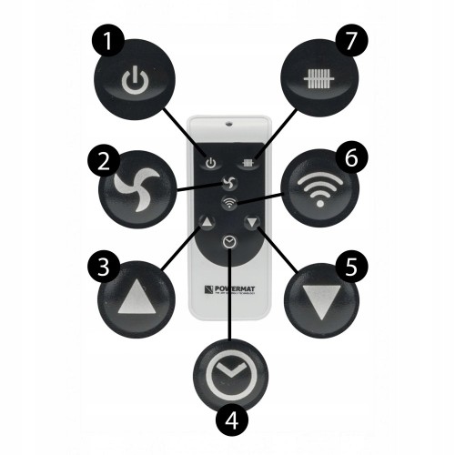 Łatwość w przełączaniu mocy grzejnika zapewnia jeden przycisk z panelu lub pilota.