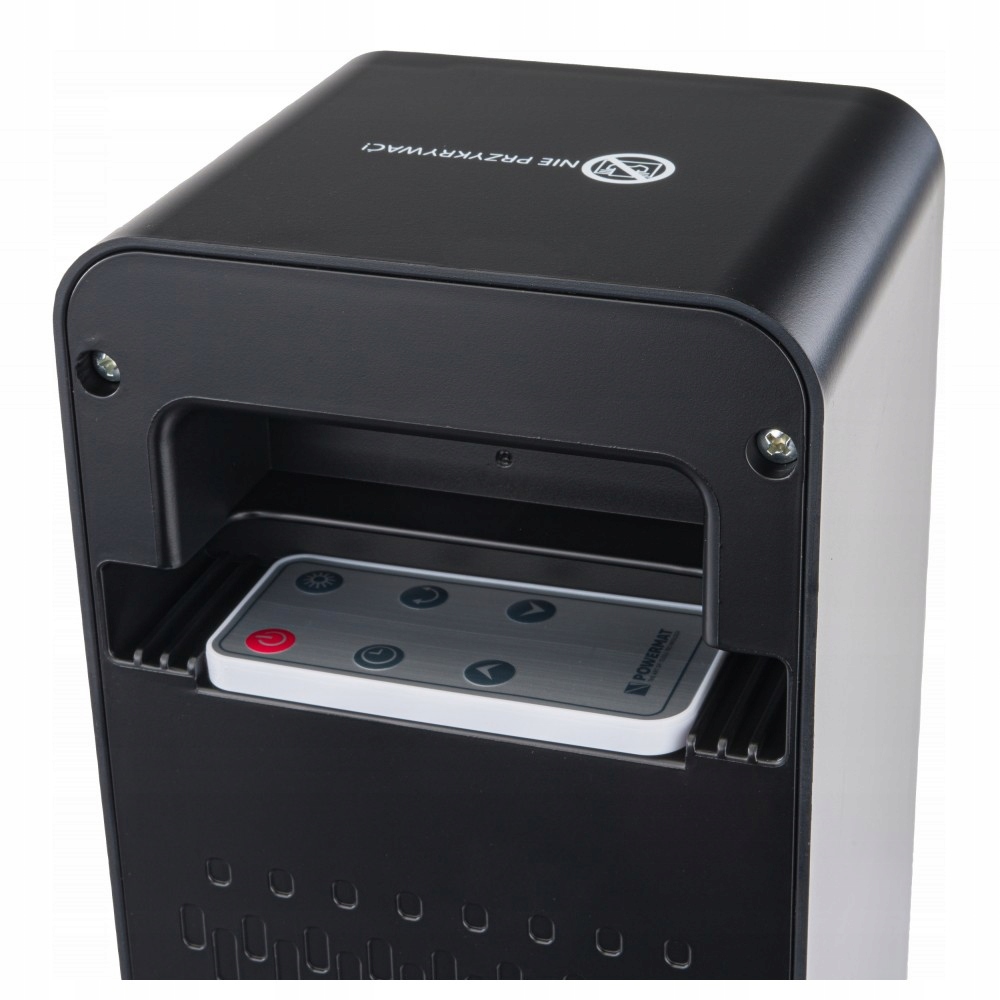 Z tyłu grzejnika znajduje się wnęka, gdzie można położyć pilota oraz przenieść urządzenie za pomocą wyżłobionego uchwytu.