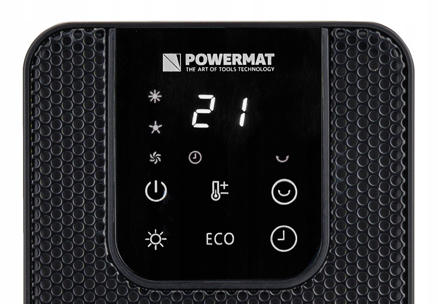 Łatwość w przełączaniu mocy grzejnika zapewnia jeden przycisk z panelu lub pilota.