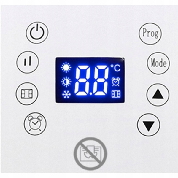 Wszystkich ustawień można łatwo dokonać na dotykowym panelu sterowania wyświetlacza LCD, a jednocześnie dostarcza on informacji o aktualnej temperaturze w pomieszczeniu.