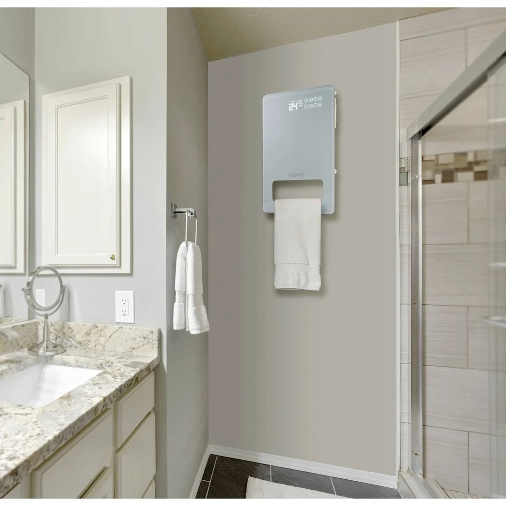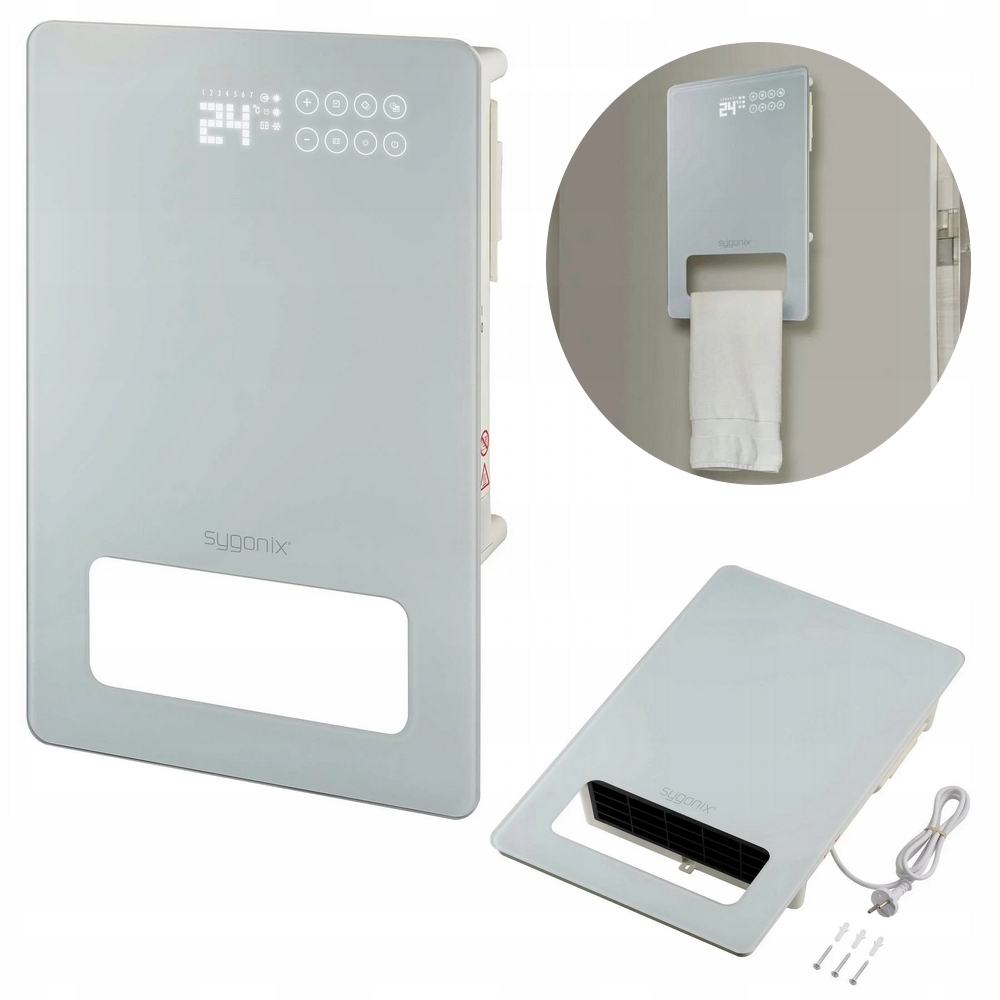 Szklany grzejnik ścienny - łazienkowy z uchwytem na ręcznik | 2000W | 3 tryby grzania | Regulacja temperatury