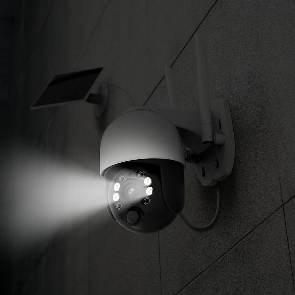 Dzięki łącznie 4 reflektorom i 4 diodom podczerwieni kamera ma zasięg widzenia w nocy do 10 metrów i może również robić kolorowe zdjęcia w ciemności.