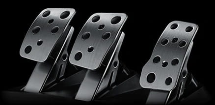 Oddzielny zespół pedałów z nieliniowym pedałem hamulca zapewnia realistyczne i czułe sterowanie.