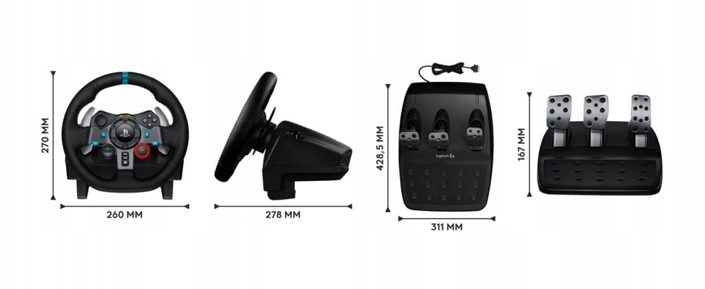 Amortyzacja zapewnia pełną i szczelną kontrolę kierownicy i pedałów. Kierownica wyścigowa Driving Force G29 jest wyposażona w trwały, niezawodny czujnik sterowania z efektem Halla, który wykorzystuje pola magnetyczne do określania położenia kierownicy.