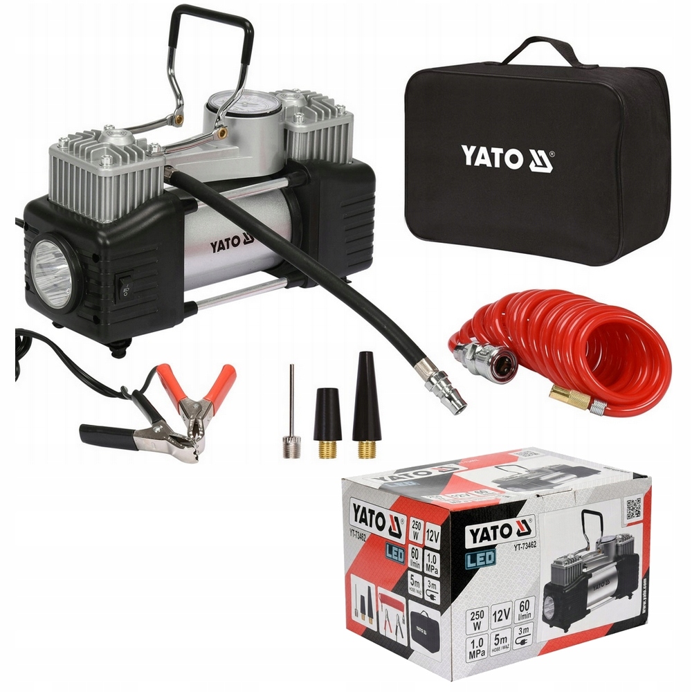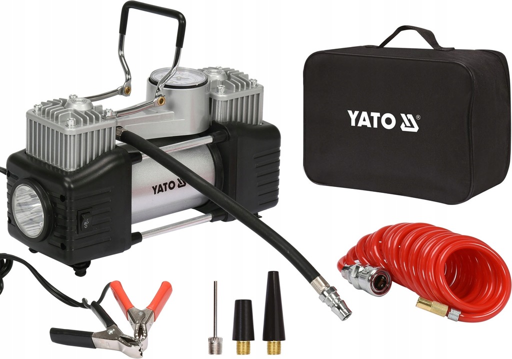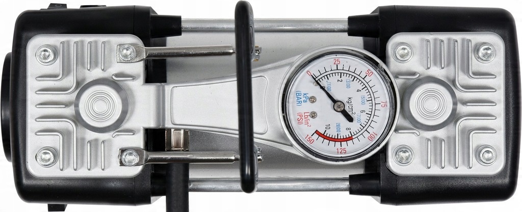 Przeznaczony do pompowania kół i dętek wyposażonych w zawór w samochodach, motocyklach i rowerach, a także - za pomocą wymiennych końcówek - materaców, pontonów, piłek.