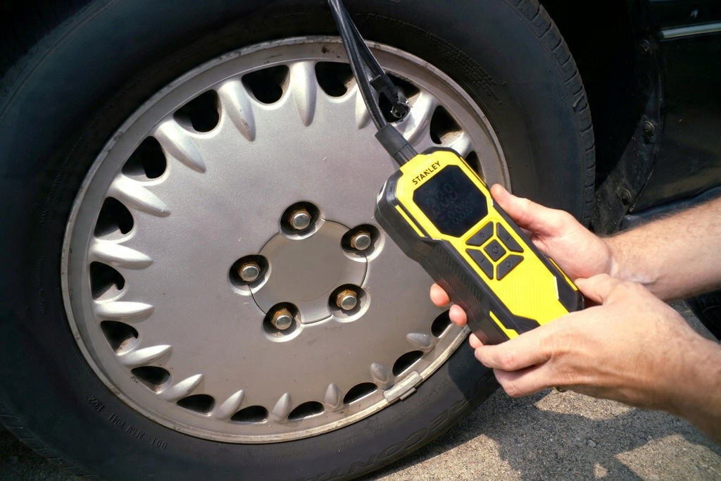 Akumulatorowy mini kompresor Stanley sprawdza się w domu, podczas podróży oraz na biwakach, zapewniając szybkie i niezawodne pompowanie.