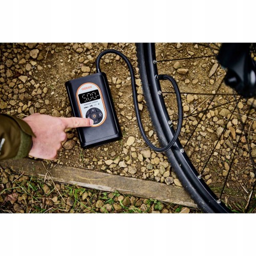Bezprzewodowa, ładowalna pompka do opon z akumulatorem litowo-jonowym, dzięki czemu jest idealnym towarzyszem na kemping i wycieczki drogowe.