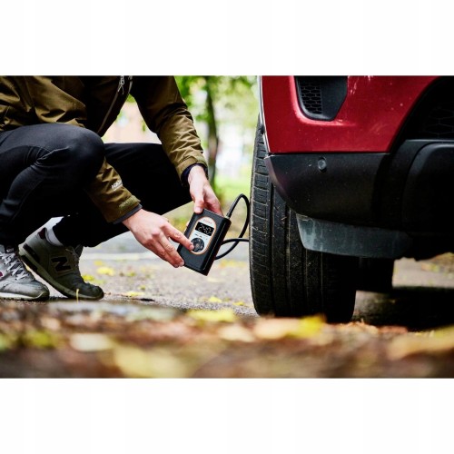 Kompresor może napompować oponę w zaledwie 3,5 minuty. Funkcja automatycznego wyłączania i zawór spustowy powietrza.