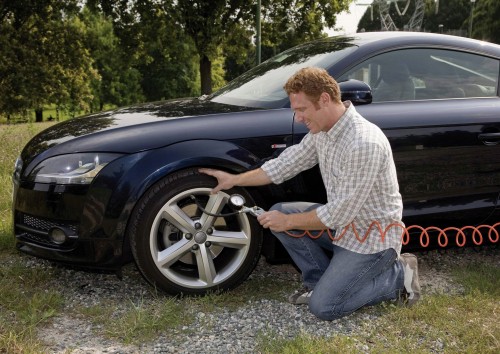 Przenośna sprężarka tłokowa w wersji bezolejowej. Wyjątkowo płaska, oszczędzająca miejsce konstrukcja. Może pracować w pozycji stojącej lub poziomo. Z aluminiową rączką i regulowanymi paskami.