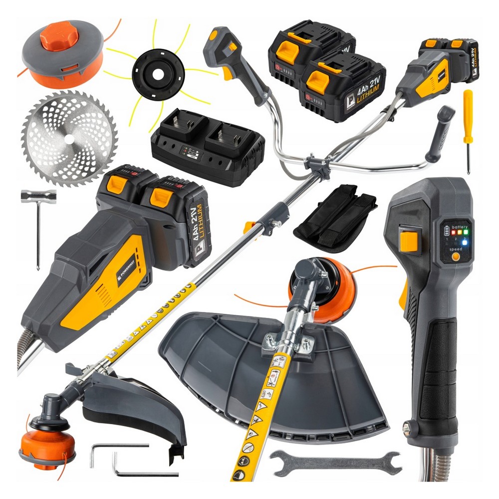 AKUMULATOR 42 V | POJEMNOŚĆ 4 AH | CIĘCIE 380 MM | ŻYŁKA I TARCZA | 3 POZIOMY PRĘDKOŚCI | SILNIK BEZSZCZOTKOWY | TRYB ECO