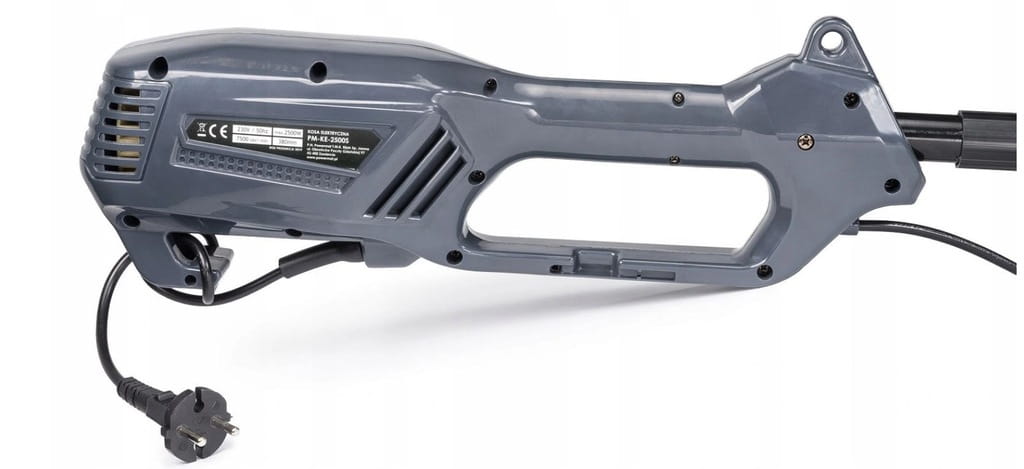 Kosa wyposażona jest w duży wygodny spust włącznika, oraz dodatkowy przełącznik blokady samopodtrzymującej, takie rozwiązanie zapewnia wygodę użytkowania gdyż, nie wymaga ciągłego przyciskania spustu włącznika.