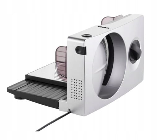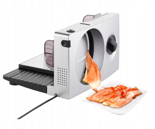 Sprawdź dużą wytrzymałość i niezwykłą precyzję cięcia dzięki nowej krajalnicy elektrycznej. Łatwo pokroisz mięso, wędliny, chleb, bułki, ciasta, owoce, warzywa i wiele innych produktów spożywczych.